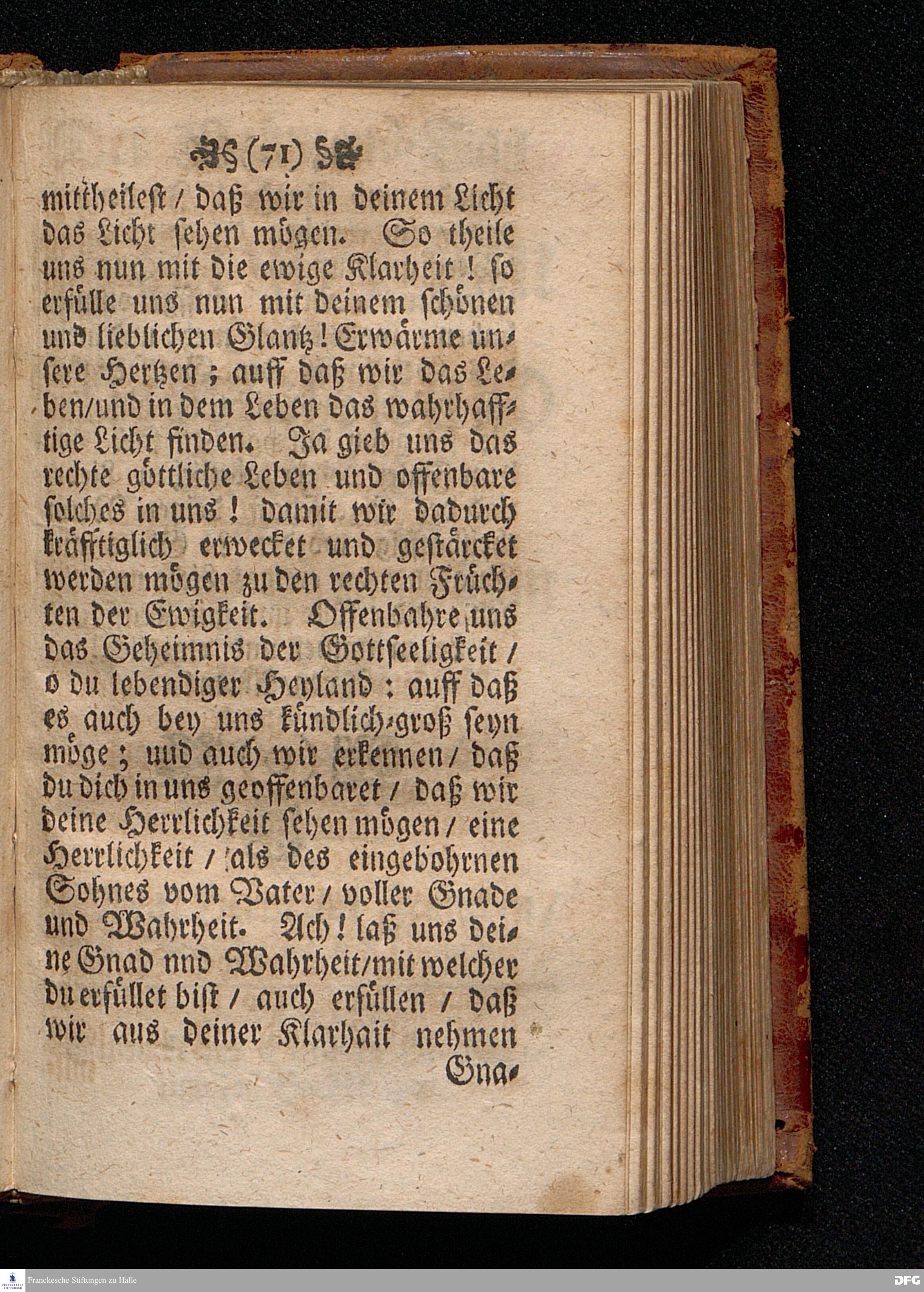 Das Kündlich=grosse Geheimniß Der Gottseeligkeit / Am dritten Weyhenacht=Feyertage ANNO 1698. In einer Predigt Uber das Evangelium Joh.I, 1--14. In der St. Georgen=Kirche zu Glaucha an Halle / vorgestellet von M.August Hermann Francken / S.S.Theol.P.P.Ord.& P.Glauch. HALLE / Gedruckt bey Christoph Salfelden / Königl.Preuß.Hoff-u.Reg.Buchd. 1702