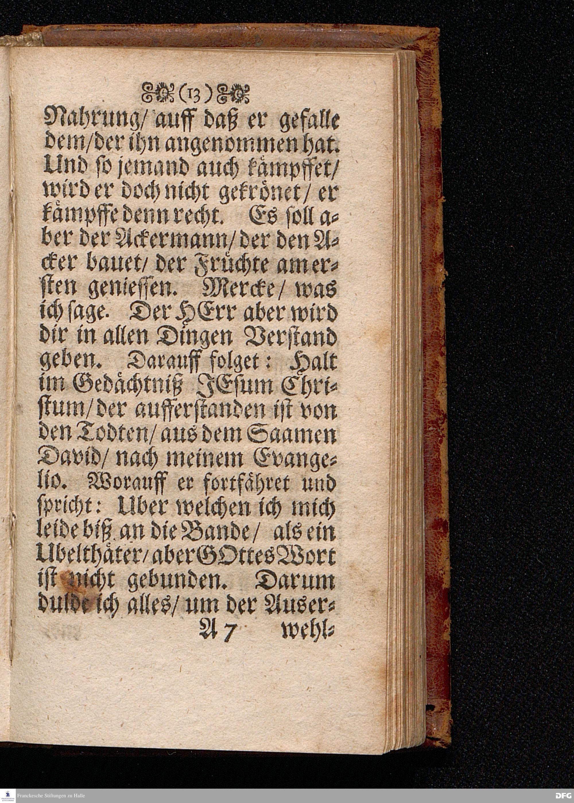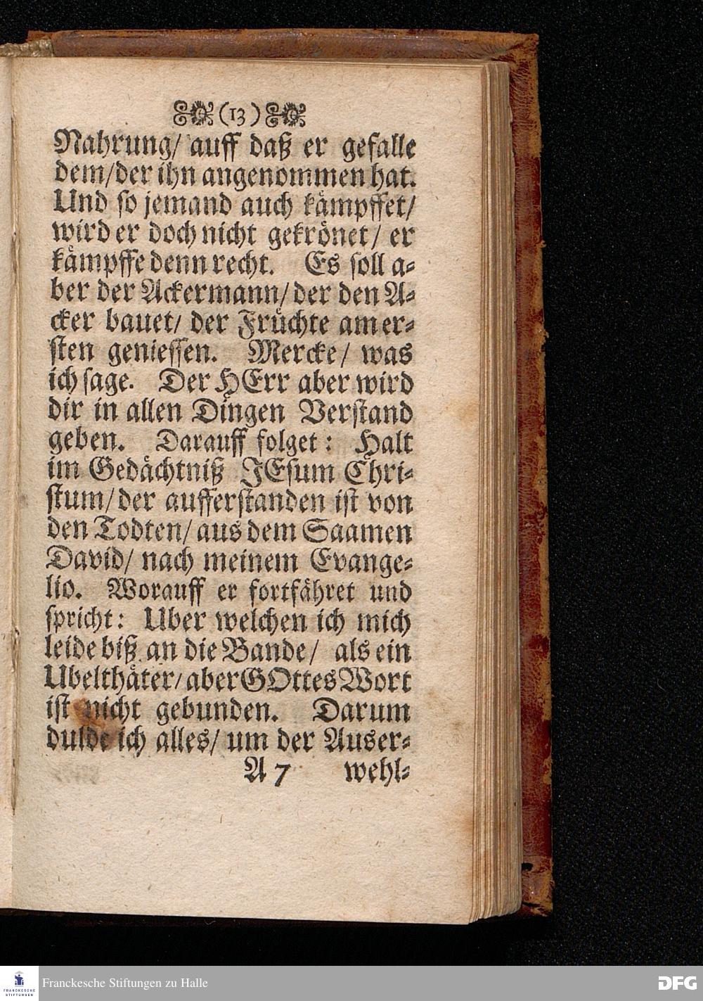 Das Lebendige Gedächtniß der Aufferstehung JESU CHristi; Am ersten Oster=Feyer=Tage über das Evangelium Marc. XVI. 1==8. In der St.Georgen=Kirche zu Glaucha an Halle MDCCI. vorgestellet / von August Hermann Francken / SS.Theol.PP.Ordin. & Past.Glauch. Halle / Druckts Joh.Grunert / U.B.