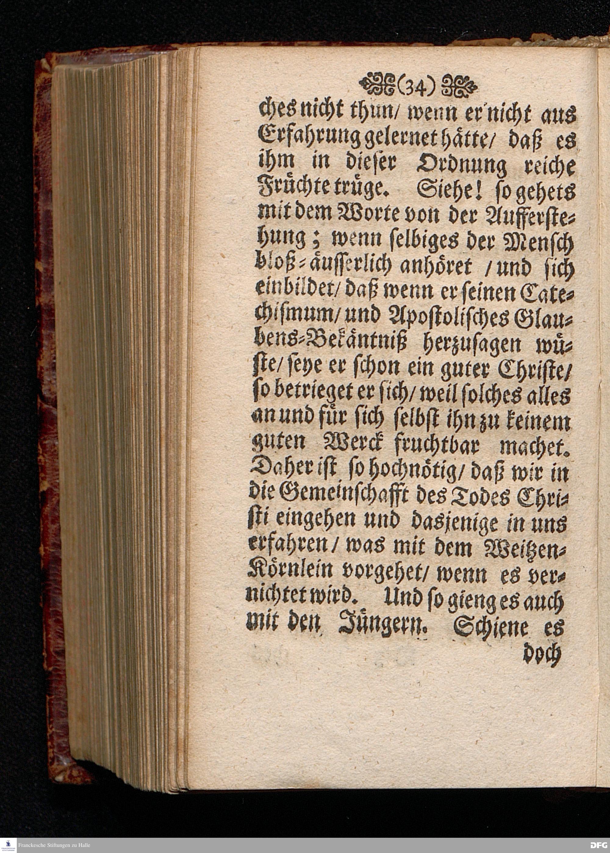 Das Lebendige Gedächtniß der Aufferstehung JESU CHristi; Am ersten Oster=Feyer=Tage über das Evangelium Marc. XVI. 1==8. In der St.Georgen=Kirche zu Glaucha an Halle MDCCI. vorgestellet / von August Hermann Francken / SS.Theol.PP.Ordin. & Past.Glauch. Halle / Druckts Joh.Grunert / U.B.