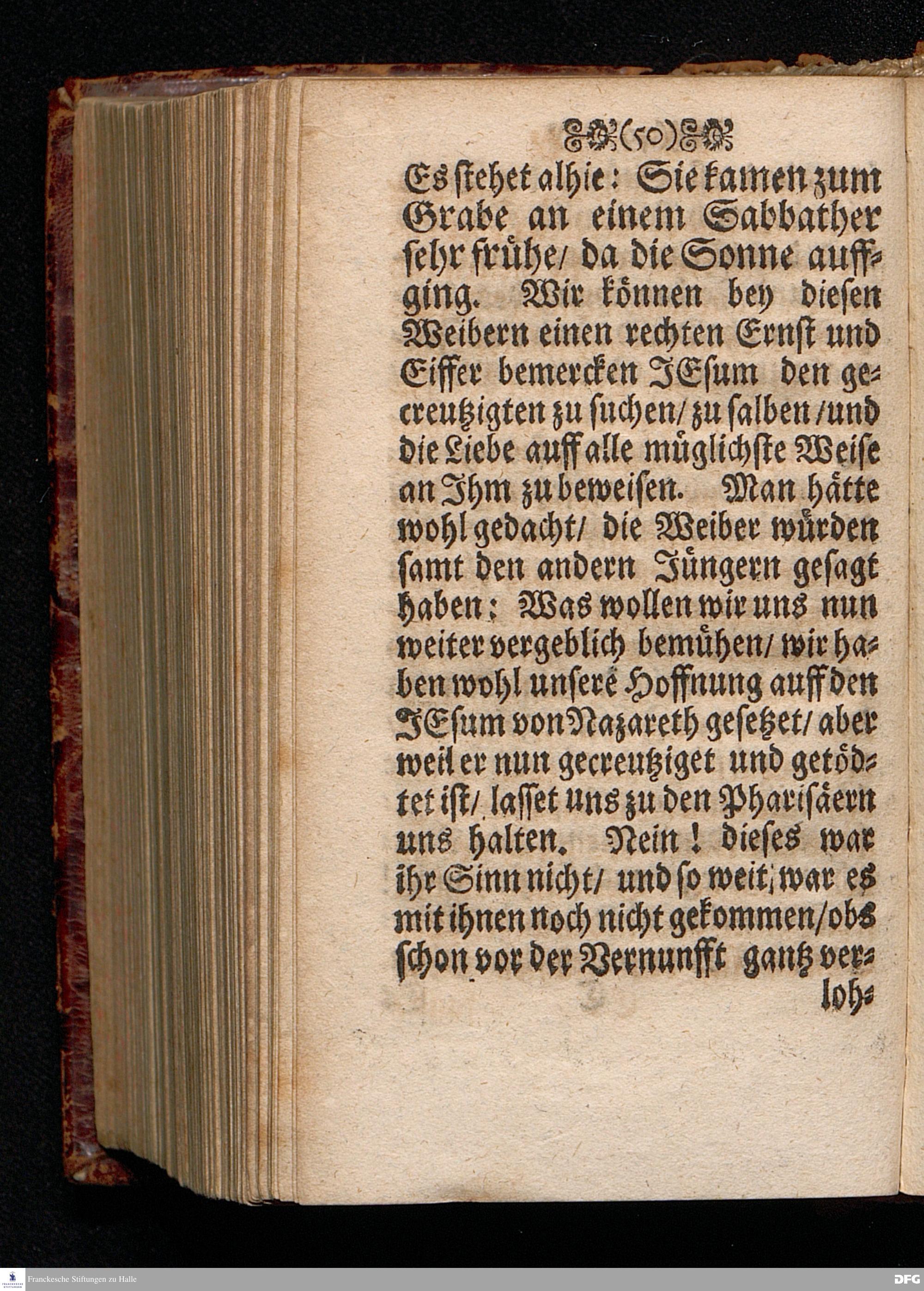 Das Lebendige Gedächtniß der Aufferstehung JESU CHristi; Am ersten Oster=Feyer=Tage über das Evangelium Marc. XVI. 1==8. In der St.Georgen=Kirche zu Glaucha an Halle MDCCI. vorgestellet / von August Hermann Francken / SS.Theol.PP.Ordin. & Past.Glauch. Halle / Druckts Joh.Grunert / U.B.