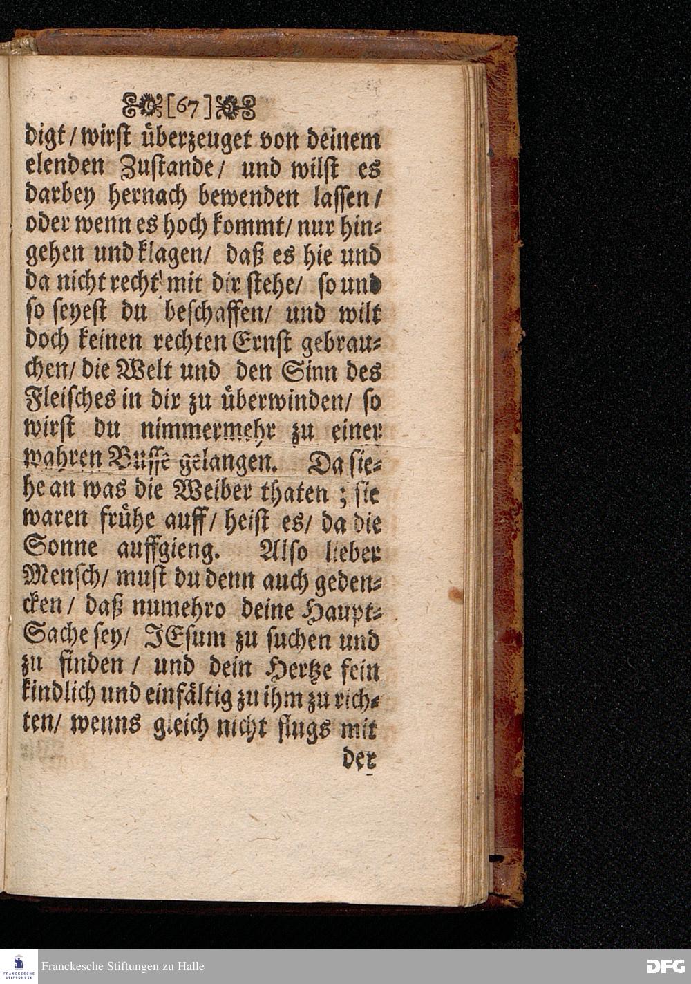 Das Lebendige Gedächtniß der Aufferstehung JESU CHristi; Am ersten Oster=Feyer=Tage über das Evangelium Marc. XVI. 1==8. In der St.Georgen=Kirche zu Glaucha an Halle MDCCI. vorgestellet / von August Hermann Francken / SS.Theol.PP.Ordin. & Past.Glauch. Halle / Druckts Joh.Grunert / U.B.