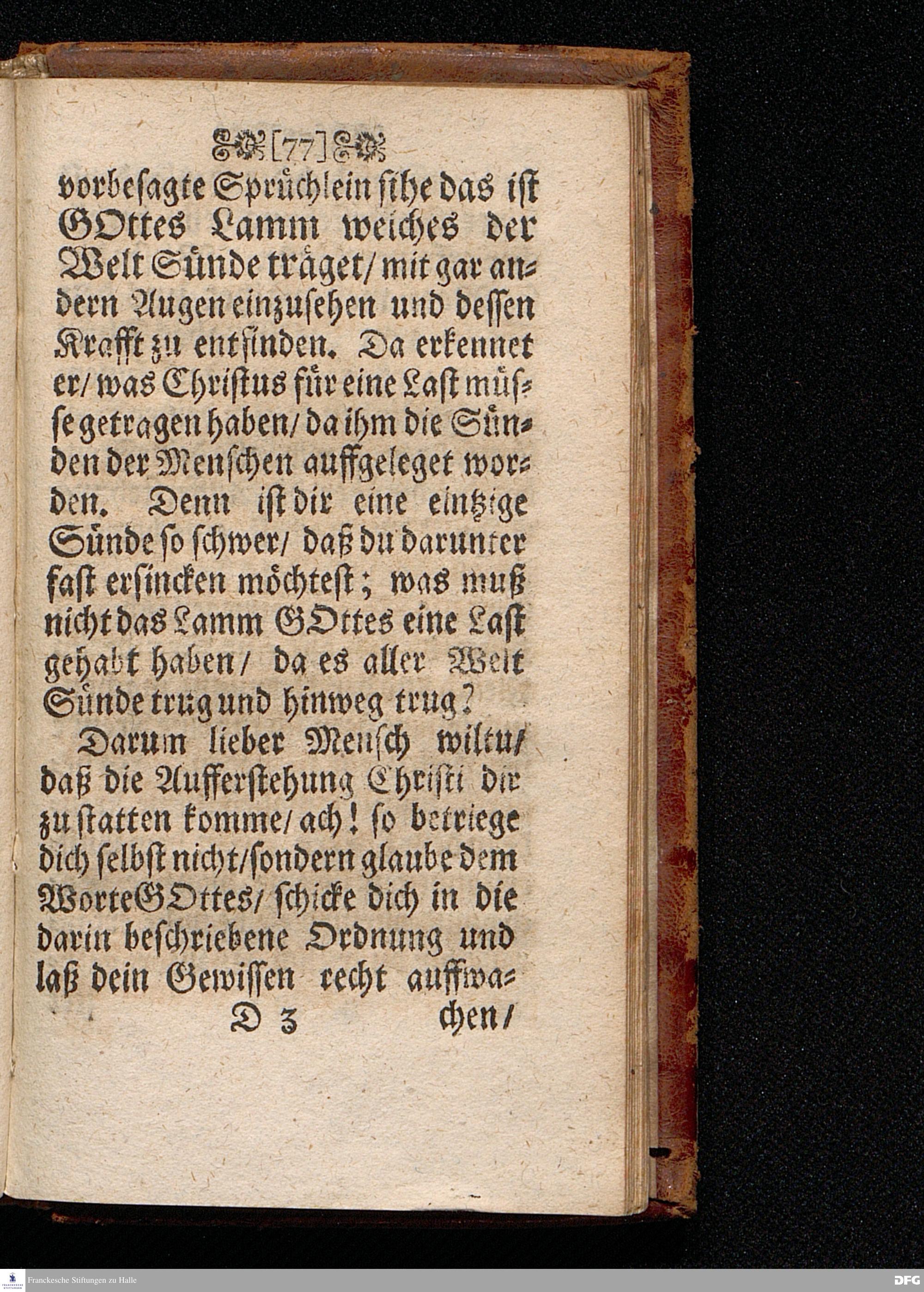 Das Lebendige Gedächtniß der Aufferstehung JESU CHristi; Am ersten Oster=Feyer=Tage über das Evangelium Marc. XVI. 1==8. In der St.Georgen=Kirche zu Glaucha an Halle MDCCI. vorgestellet / von August Hermann Francken / SS.Theol.PP.Ordin. & Past.Glauch. Halle / Druckts Joh.Grunert / U.B.