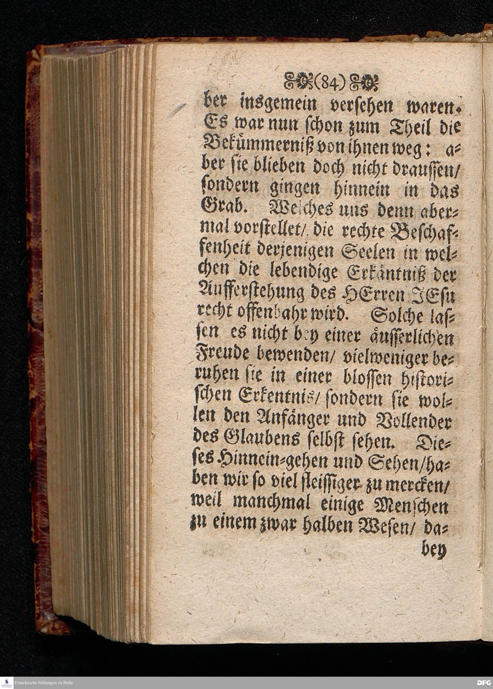 Das Lebendige Gedächtniß der Aufferstehung JESU CHristi; Am ersten Oster=Feyer=Tage über das Evangelium Marc. XVI. 1==8. In der St.Georgen=Kirche zu Glaucha an Halle MDCCI. vorgestellet / von August Hermann Francken / SS.Theol.PP.Ordin. & Past.Glauch. Halle / Druckts Joh.Grunert / U.B.