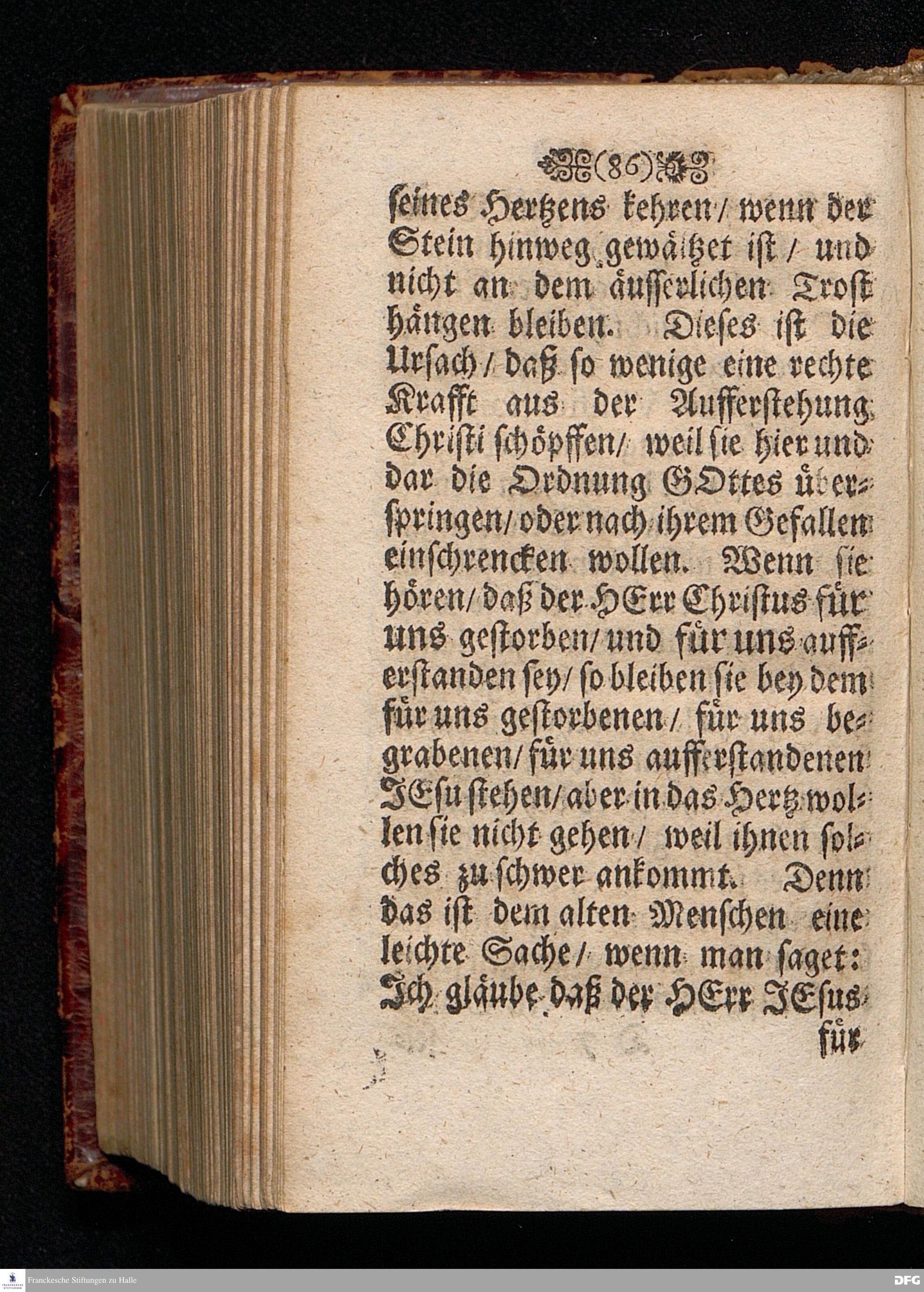 Das Lebendige Gedächtniß der Aufferstehung JESU CHristi; Am ersten Oster=Feyer=Tage über das Evangelium Marc. XVI. 1==8. In der St.Georgen=Kirche zu Glaucha an Halle MDCCI. vorgestellet / von August Hermann Francken / SS.Theol.PP.Ordin. & Past.Glauch. Halle / Druckts Joh.Grunert / U.B.