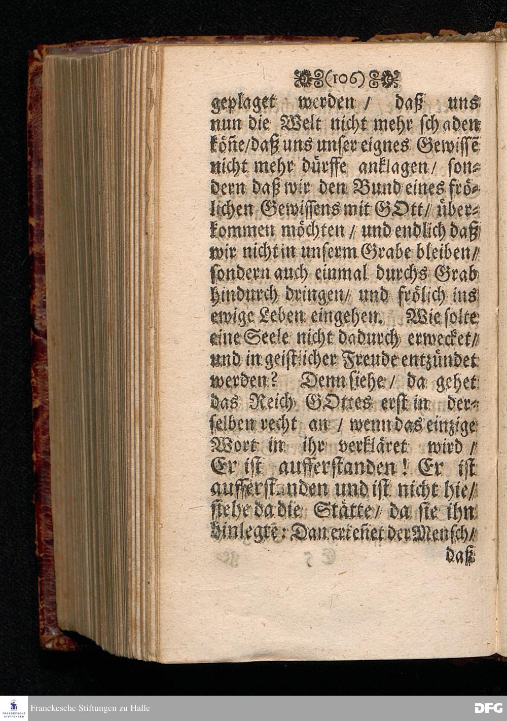 Das Lebendige Gedächtniß der Aufferstehung JESU CHristi; Am ersten Oster=Feyer=Tage über das Evangelium Marc. XVI. 1==8. In der St.Georgen=Kirche zu Glaucha an Halle MDCCI. vorgestellet / von August Hermann Francken / SS.Theol.PP.Ordin. & Past.Glauch. Halle / Druckts Joh.Grunert / U.B.