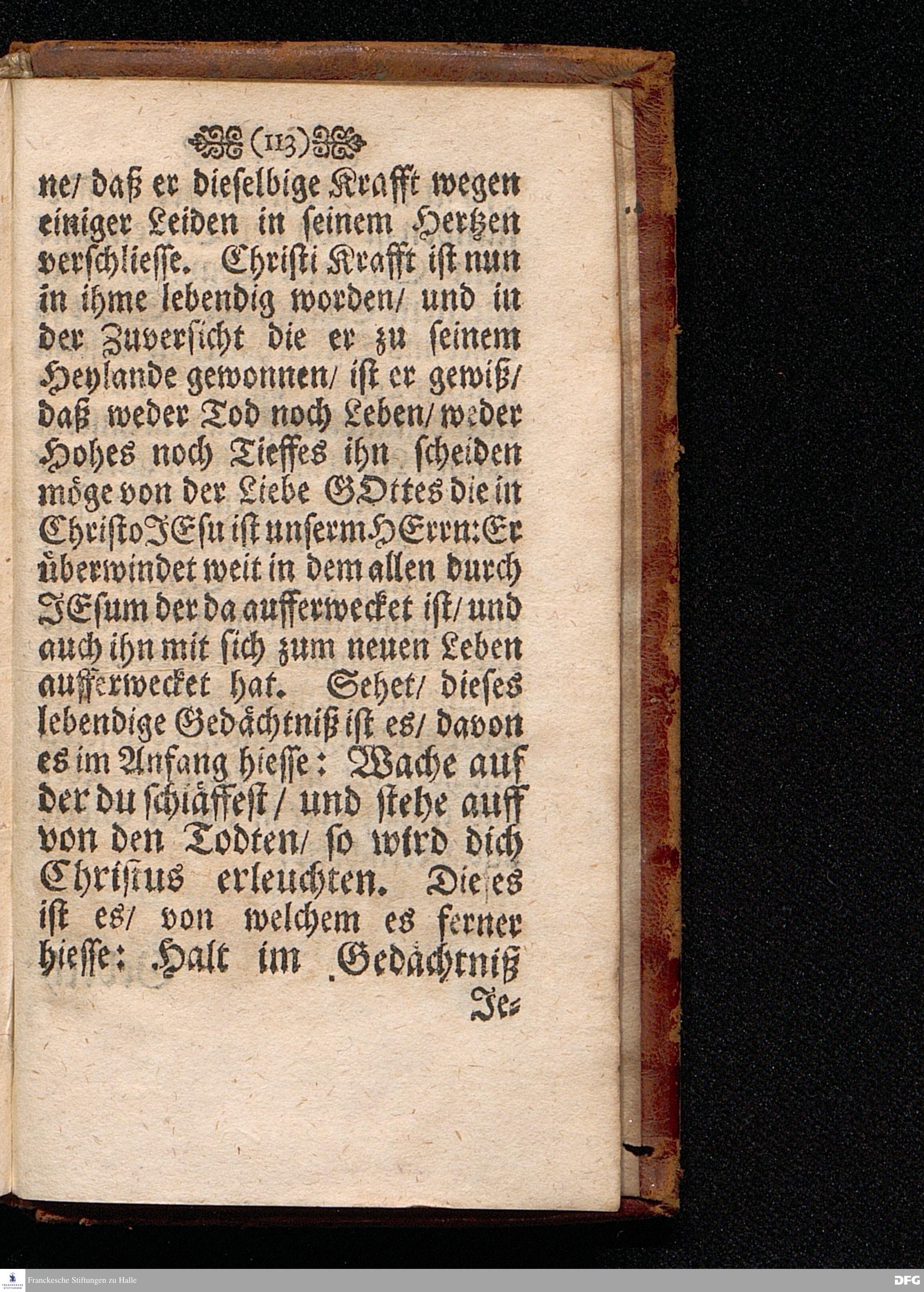 Das Lebendige Gedächtniß der Aufferstehung JESU CHristi; Am ersten Oster=Feyer=Tage über das Evangelium Marc. XVI. 1==8. In der St.Georgen=Kirche zu Glaucha an Halle MDCCI. vorgestellet / von August Hermann Francken / SS.Theol.PP.Ordin. & Past.Glauch. Halle / Druckts Joh.Grunert / U.B.