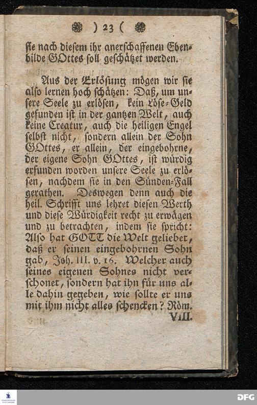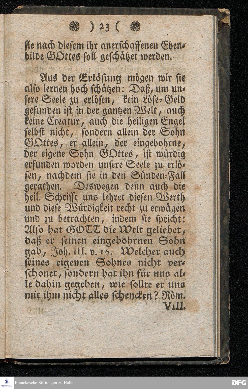 Der Hohe Werth der Seelen, In einer Buß=Predigt über Marc.8. v.36. Am 5.Junii 1709. In der St.Georgen=Kirche zu Glaucha an Halle vorgestellet, Von August Herm. Francken, SS.Theol.Prof.und Past.zu St.Ulrich, und des hiesigen Gymnasii Schol. HALLE, In Verlegung des Waysenhauses. 1753.