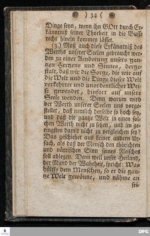 Der Hohe Werth der Seelen, In einer Buß=Predigt über Marc.8. v.36. Am 5.Junii 1709. In der St.Georgen=Kirche zu Glaucha an Halle vorgestellet, Von August Herm. Francken, SS.Theol.Prof.und Past.zu St.Ulrich, und des hiesigen Gymnasii Schol. HALLE, In Verlegung des Waysenhauses. 1753.