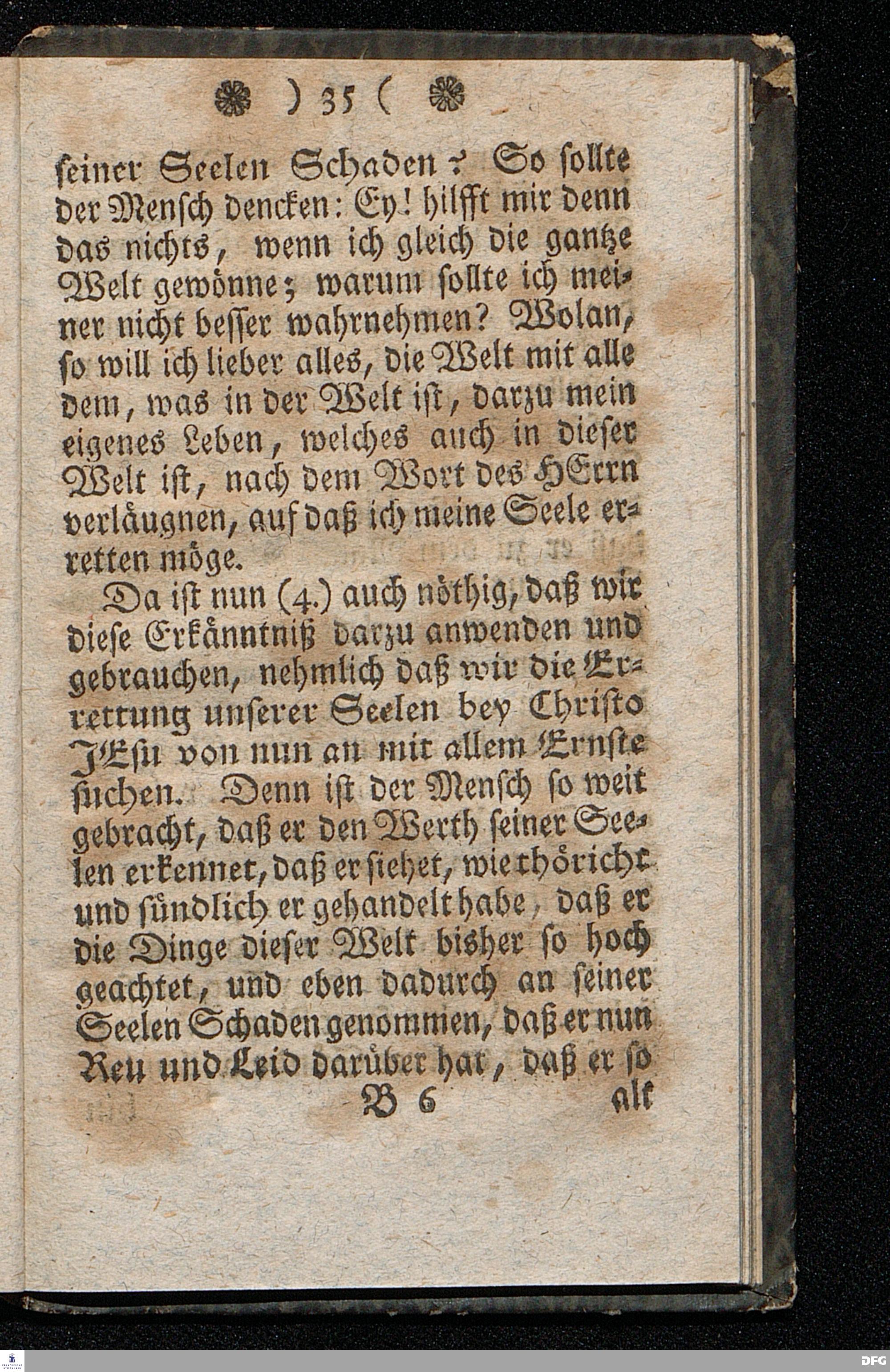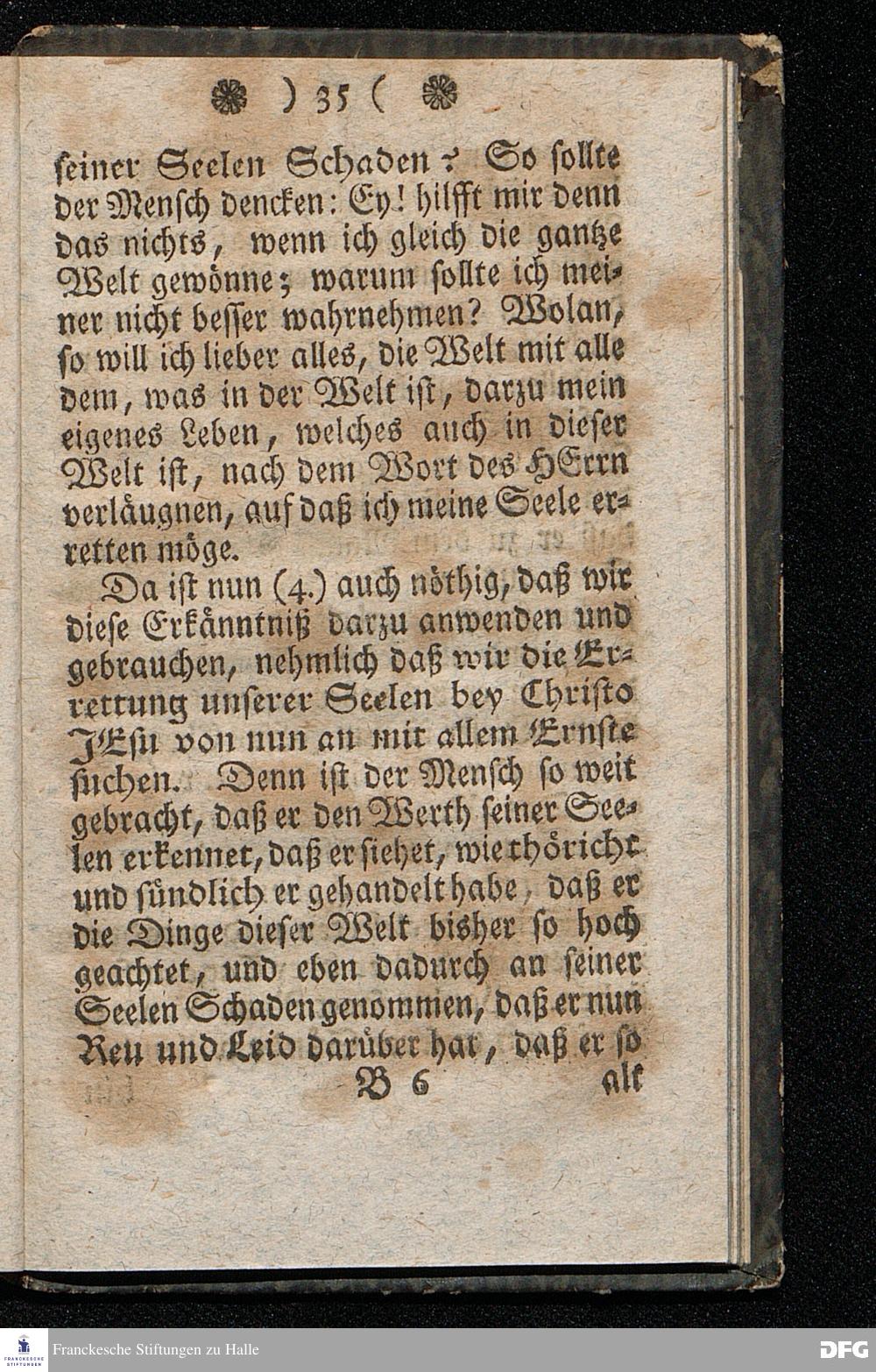 Der Hohe Werth der Seelen, In einer Buß=Predigt über Marc.8. v.36. Am 5.Junii 1709. In der St.Georgen=Kirche zu Glaucha an Halle vorgestellet, Von August Herm. Francken, SS.Theol.Prof.und Past.zu St.Ulrich, und des hiesigen Gymnasii Schol. HALLE, In Verlegung des Waysenhauses. 1753.