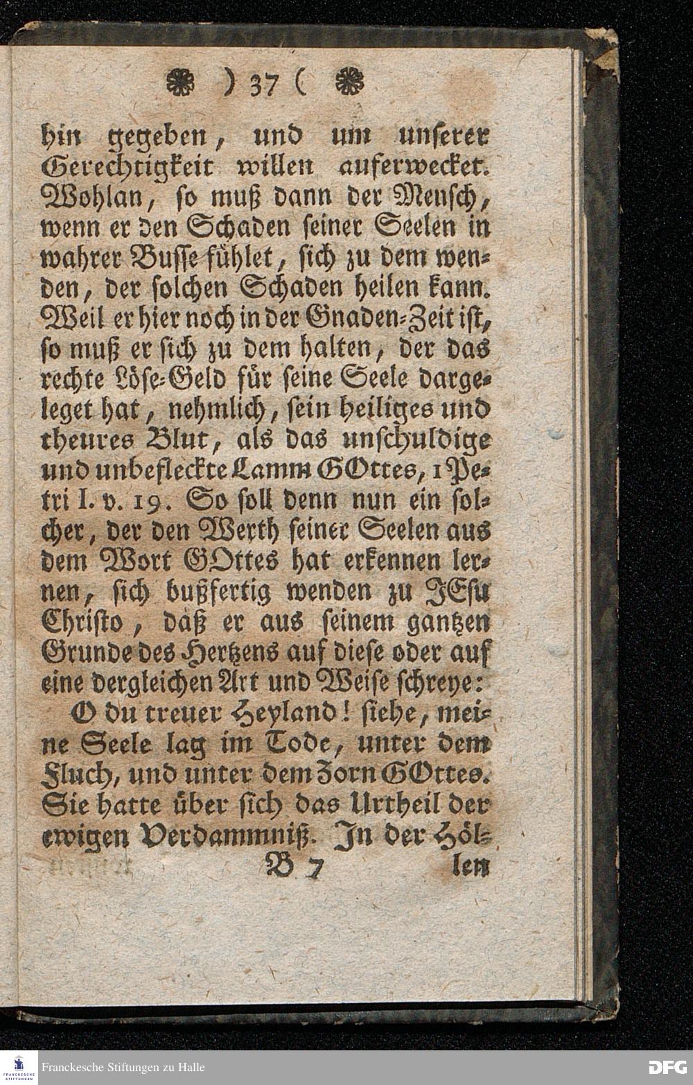 Der Hohe Werth der Seelen, In einer Buß=Predigt über Marc.8. v.36. Am 5.Junii 1709. In der St.Georgen=Kirche zu Glaucha an Halle vorgestellet, Von August Herm. Francken, SS.Theol.Prof.und Past.zu St.Ulrich, und des hiesigen Gymnasii Schol. HALLE, In Verlegung des Waysenhauses. 1753.