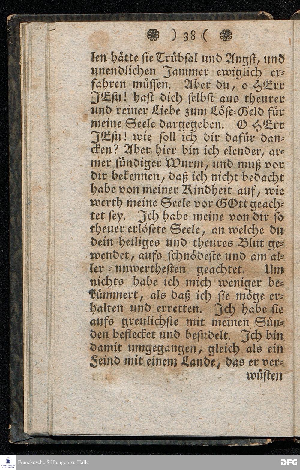 Der Hohe Werth der Seelen, In einer Buß=Predigt über Marc.8. v.36. Am 5.Junii 1709. In der St.Georgen=Kirche zu Glaucha an Halle vorgestellet, Von August Herm. Francken, SS.Theol.Prof.und Past.zu St.Ulrich, und des hiesigen Gymnasii Schol. HALLE, In Verlegung des Waysenhauses. 1753.