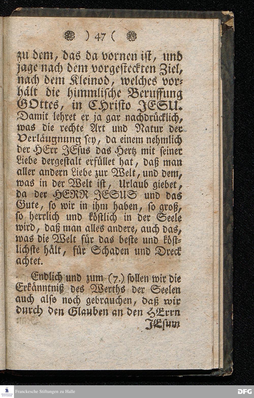 Der Hohe Werth der Seelen, In einer Buß=Predigt über Marc.8. v.36. Am 5.Junii 1709. In der St.Georgen=Kirche zu Glaucha an Halle vorgestellet, Von August Herm. Francken, SS.Theol.Prof.und Past.zu St.Ulrich, und des hiesigen Gymnasii Schol. HALLE, In Verlegung des Waysenhauses. 1753.