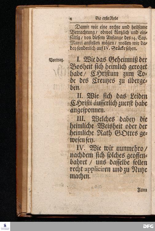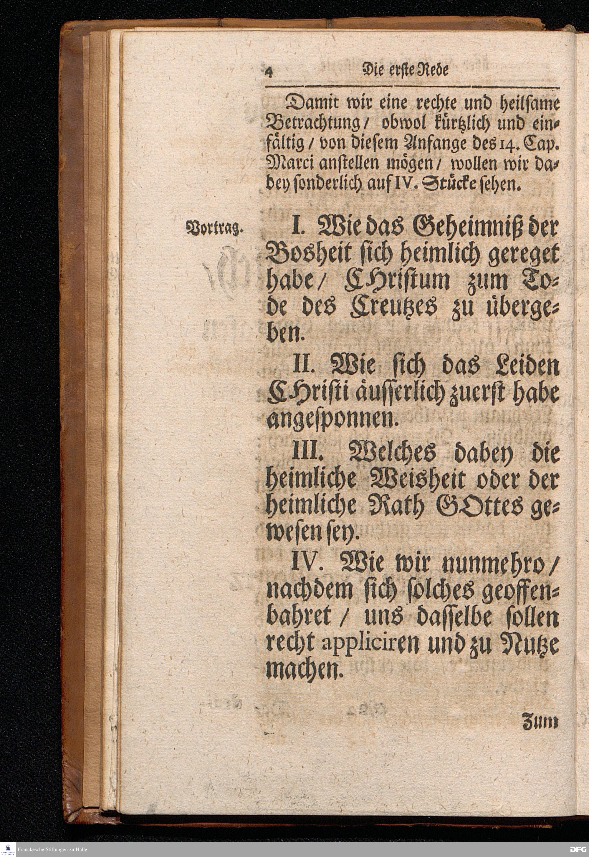 August Hermann Franckens S.Theol.Prof.Ord.und Past. Oeffentliche Reden über die Paßions=Historie / Wie dieselbe vom Evangelisten Marco im 14. und 15. Cap. beschrieben ist / gehalten Von Esto mihi bis Ostern 1712. In dem Wäysenhause zu Glaucha an Halle. HALLE, Gedruckt und verlegt im Wäysenhause, MDCCXV.