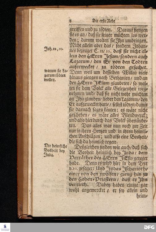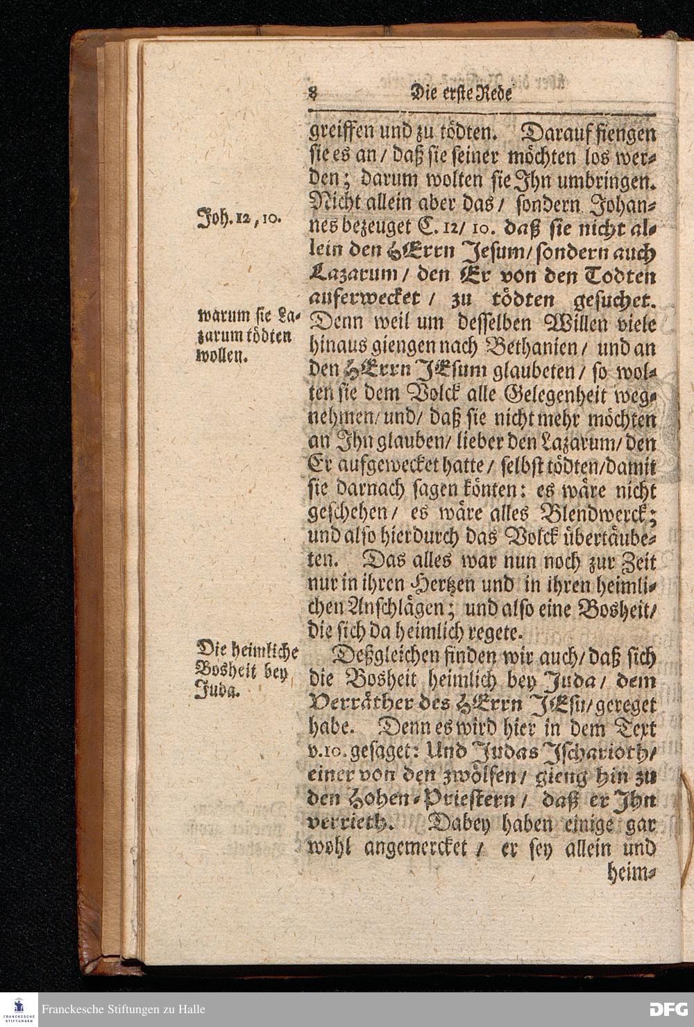 August Hermann Franckens S.Theol.Prof.Ord.und Past. Oeffentliche Reden über die Paßions=Historie / Wie dieselbe vom Evangelisten Marco im 14. und 15. Cap. beschrieben ist / gehalten Von Esto mihi bis Ostern 1712. In dem Wäysenhause zu Glaucha an Halle. HALLE, Gedruckt und verlegt im Wäysenhause, MDCCXV.