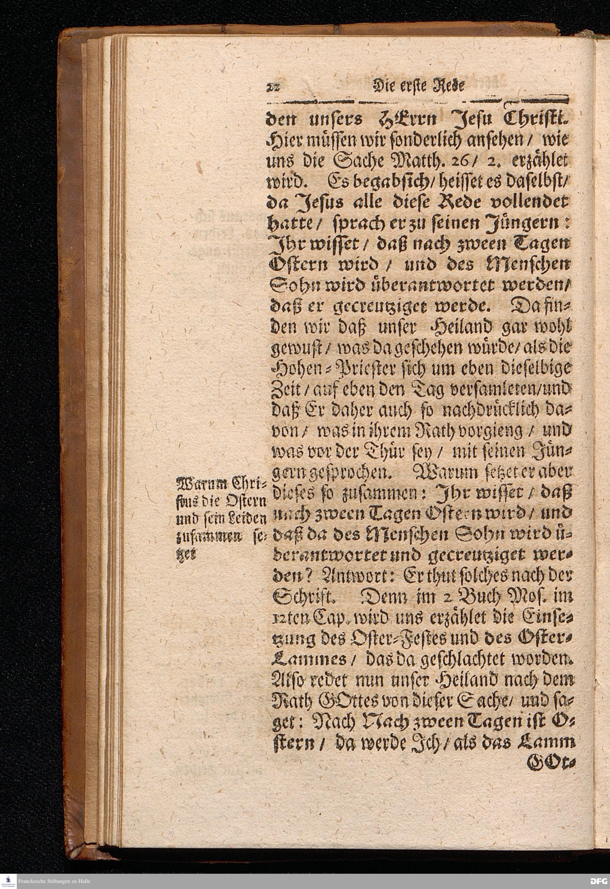 August Hermann Franckens S.Theol.Prof.Ord.und Past. Oeffentliche Reden über die Paßions=Historie / Wie dieselbe vom Evangelisten Marco im 14. und 15. Cap. beschrieben ist / gehalten Von Esto mihi bis Ostern 1712. In dem Wäysenhause zu Glaucha an Halle. HALLE, Gedruckt und verlegt im Wäysenhause, MDCCXV.