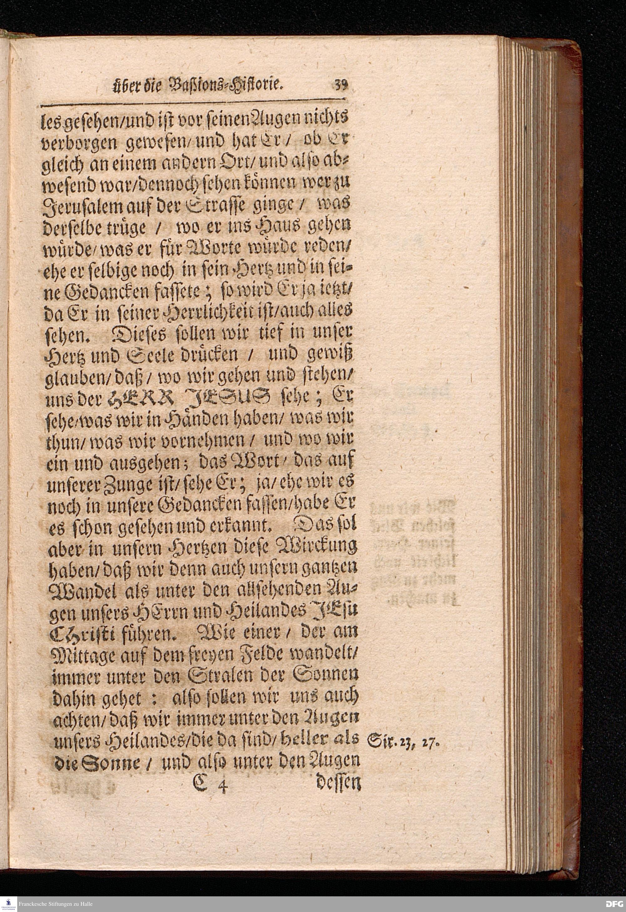 August Hermann Franckens S.Theol.Prof.Ord.und Past. Oeffentliche Reden über die Paßions=Historie / Wie dieselbe vom Evangelisten Marco im 14. und 15. Cap. beschrieben ist / gehalten Von Esto mihi bis Ostern 1712. In dem Wäysenhause zu Glaucha an Halle. HALLE, Gedruckt und verlegt im Wäysenhause, MDCCXV.
