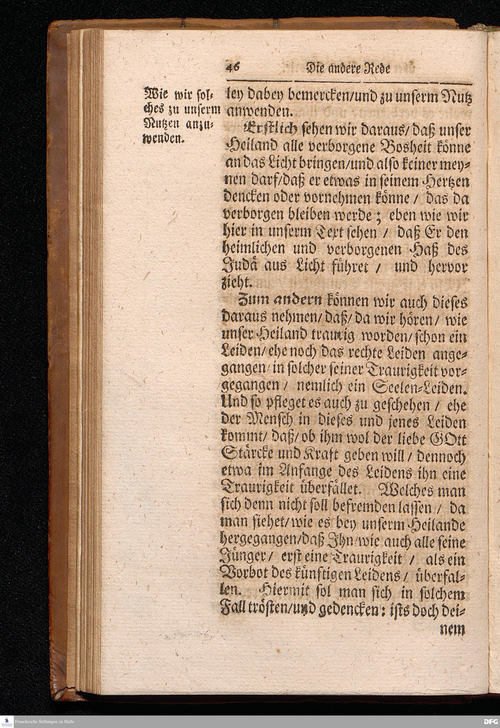 August Hermann Franckens S.Theol.Prof.Ord.und Past. Oeffentliche Reden über die Paßions=Historie / Wie dieselbe vom Evangelisten Marco im 14. und 15. Cap. beschrieben ist / gehalten Von Esto mihi bis Ostern 1712. In dem Wäysenhause zu Glaucha an Halle. HALLE, Gedruckt und verlegt im Wäysenhause, MDCCXV.