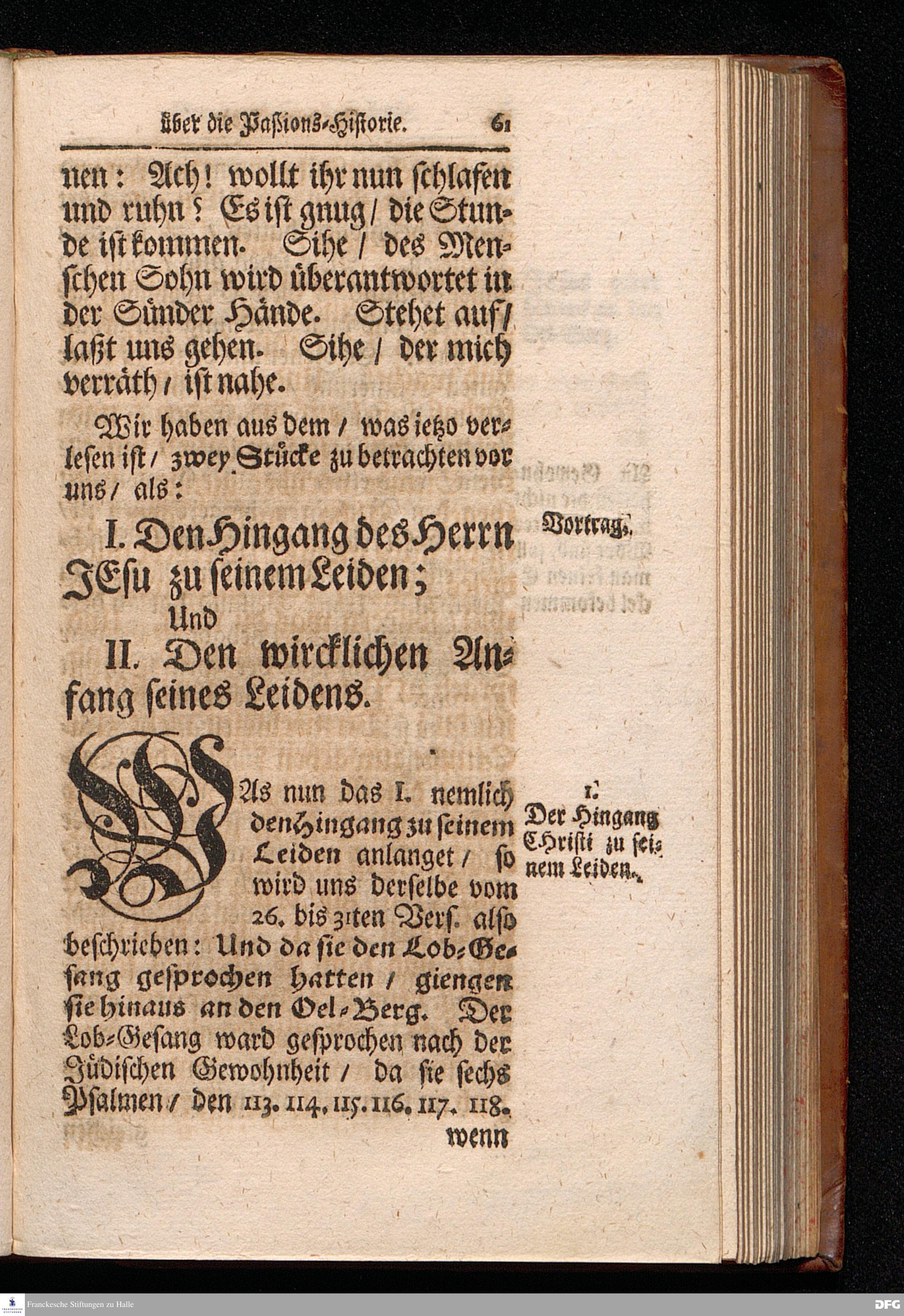 August Hermann Franckens S.Theol.Prof.Ord.und Past. Oeffentliche Reden über die Paßions=Historie / Wie dieselbe vom Evangelisten Marco im 14. und 15. Cap. beschrieben ist / gehalten Von Esto mihi bis Ostern 1712. In dem Wäysenhause zu Glaucha an Halle. HALLE, Gedruckt und verlegt im Wäysenhause, MDCCXV.