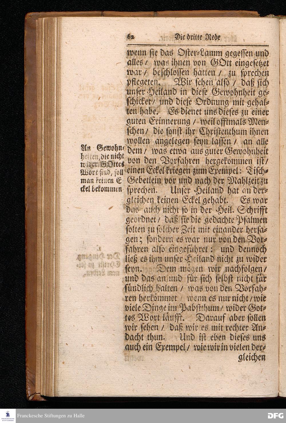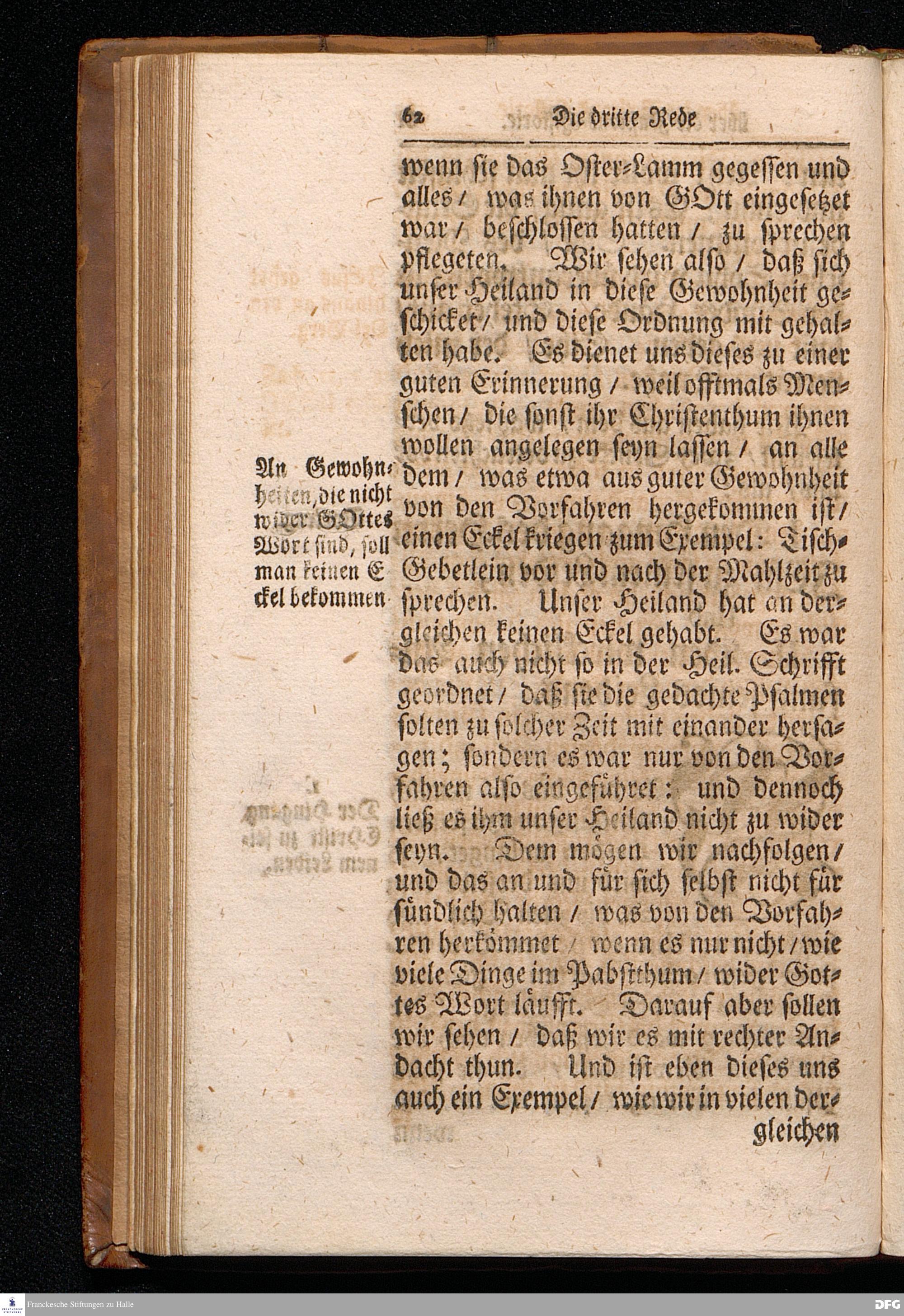 August Hermann Franckens S.Theol.Prof.Ord.und Past. Oeffentliche Reden über die Paßions=Historie / Wie dieselbe vom Evangelisten Marco im 14. und 15. Cap. beschrieben ist / gehalten Von Esto mihi bis Ostern 1712. In dem Wäysenhause zu Glaucha an Halle. HALLE, Gedruckt und verlegt im Wäysenhause, MDCCXV.