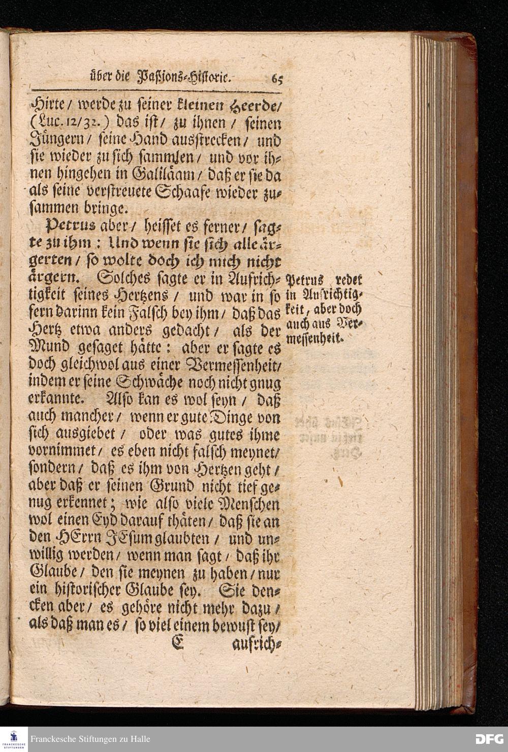 August Hermann Franckens S.Theol.Prof.Ord.und Past. Oeffentliche Reden über die Paßions=Historie / Wie dieselbe vom Evangelisten Marco im 14. und 15. Cap. beschrieben ist / gehalten Von Esto mihi bis Ostern 1712. In dem Wäysenhause zu Glaucha an Halle. HALLE, Gedruckt und verlegt im Wäysenhause, MDCCXV.