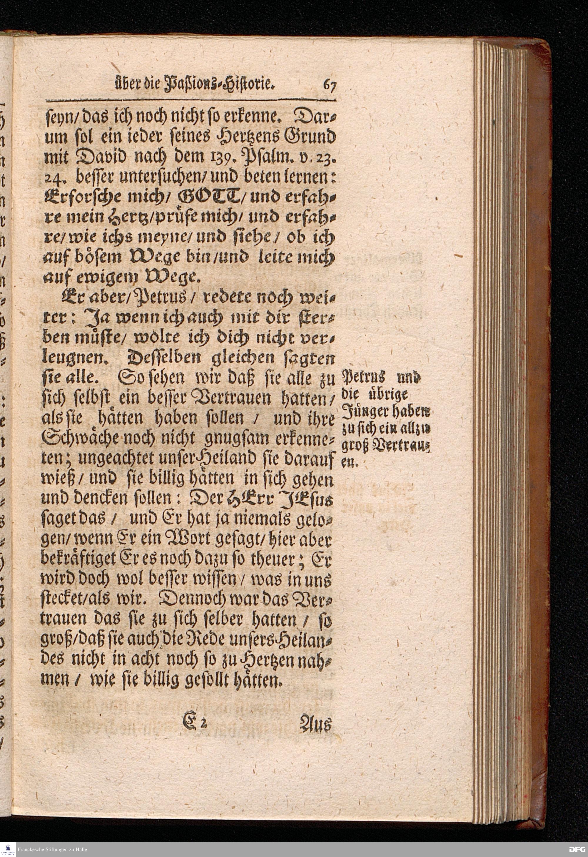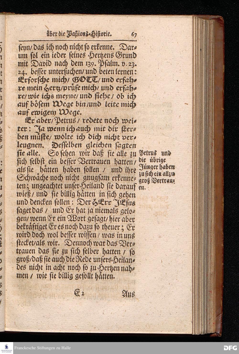 August Hermann Franckens S.Theol.Prof.Ord.und Past. Oeffentliche Reden über die Paßions=Historie / Wie dieselbe vom Evangelisten Marco im 14. und 15. Cap. beschrieben ist / gehalten Von Esto mihi bis Ostern 1712. In dem Wäysenhause zu Glaucha an Halle. HALLE, Gedruckt und verlegt im Wäysenhause, MDCCXV.