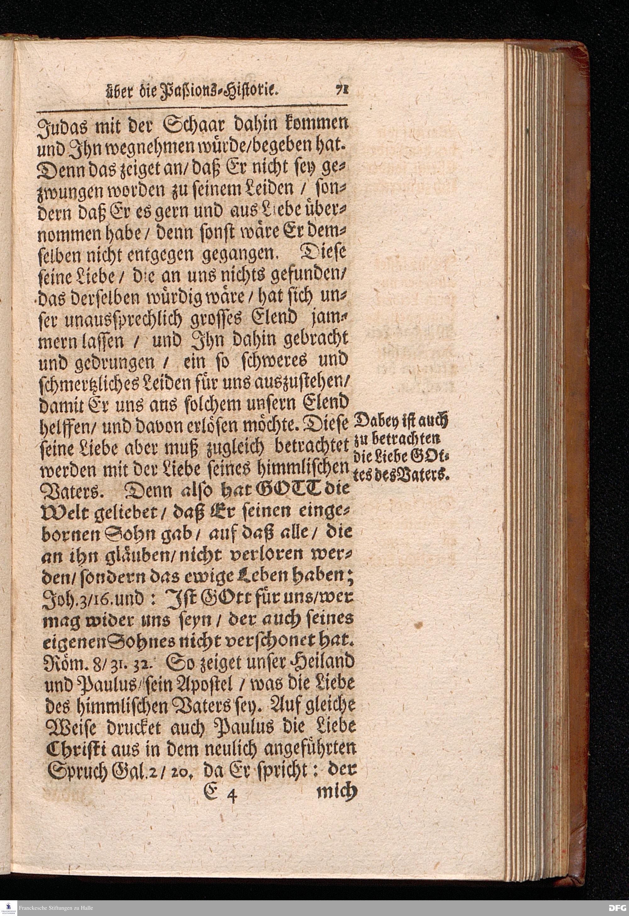 August Hermann Franckens S.Theol.Prof.Ord.und Past. Oeffentliche Reden über die Paßions=Historie / Wie dieselbe vom Evangelisten Marco im 14. und 15. Cap. beschrieben ist / gehalten Von Esto mihi bis Ostern 1712. In dem Wäysenhause zu Glaucha an Halle. HALLE, Gedruckt und verlegt im Wäysenhause, MDCCXV.