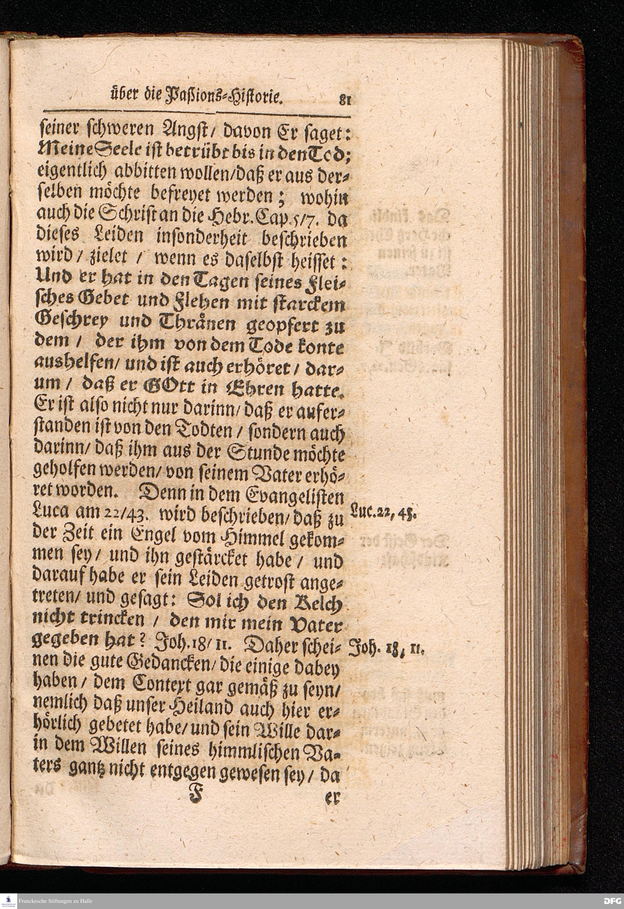 August Hermann Franckens S.Theol.Prof.Ord.und Past. Oeffentliche Reden über die Paßions=Historie / Wie dieselbe vom Evangelisten Marco im 14. und 15. Cap. beschrieben ist / gehalten Von Esto mihi bis Ostern 1712. In dem Wäysenhause zu Glaucha an Halle. HALLE, Gedruckt und verlegt im Wäysenhause, MDCCXV.