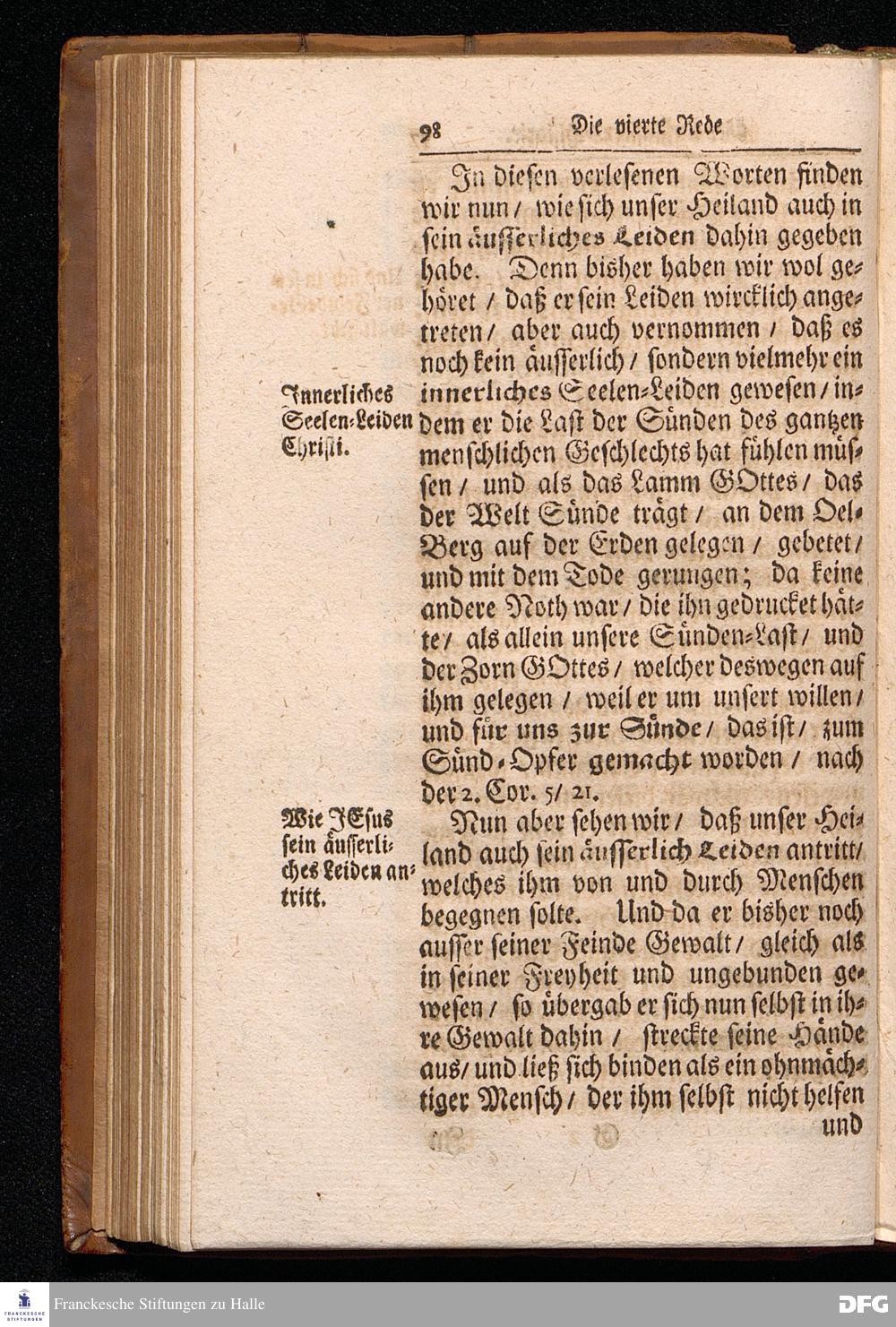 August Hermann Franckens S.Theol.Prof.Ord.und Past. Oeffentliche Reden über die Paßions=Historie / Wie dieselbe vom Evangelisten Marco im 14. und 15. Cap. beschrieben ist / gehalten Von Esto mihi bis Ostern 1712. In dem Wäysenhause zu Glaucha an Halle. HALLE, Gedruckt und verlegt im Wäysenhause, MDCCXV.