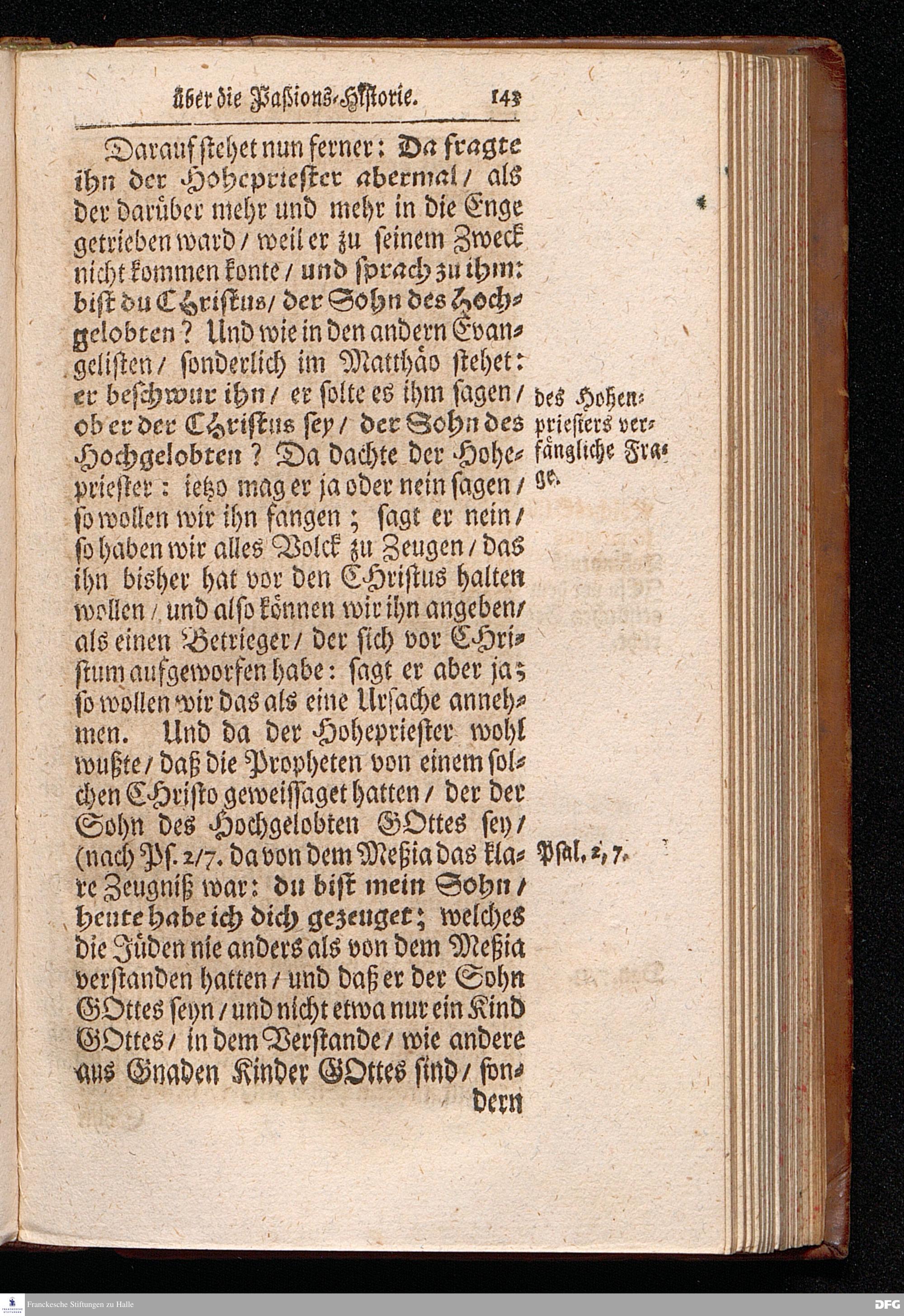 August Hermann Franckens S.Theol.Prof.Ord.und Past. Oeffentliche Reden über die Paßions=Historie / Wie dieselbe vom Evangelisten Marco im 14. und 15. Cap. beschrieben ist / gehalten Von Esto mihi bis Ostern 1712. In dem Wäysenhause zu Glaucha an Halle. HALLE, Gedruckt und verlegt im Wäysenhause, MDCCXV.