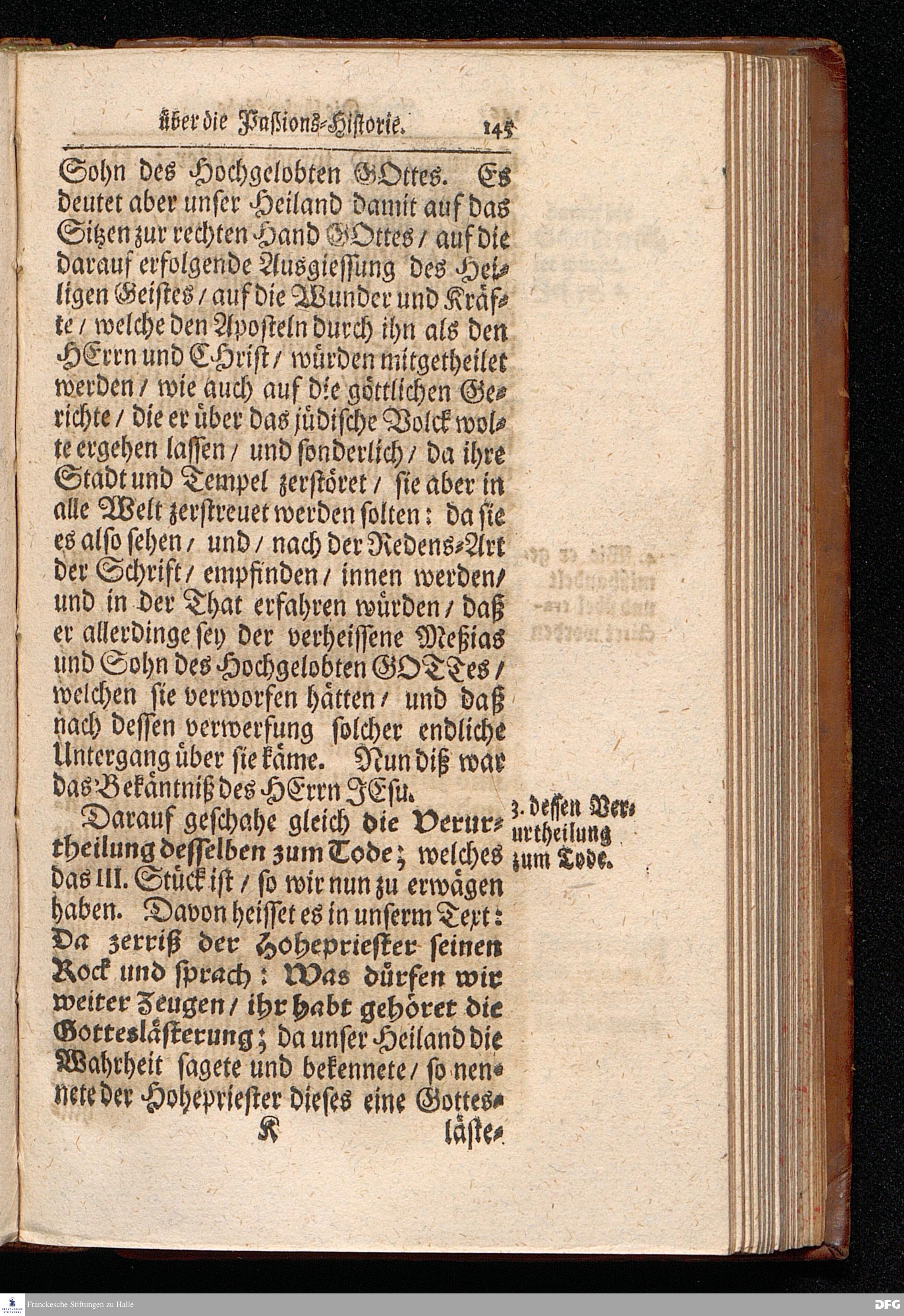 August Hermann Franckens S.Theol.Prof.Ord.und Past. Oeffentliche Reden über die Paßions=Historie / Wie dieselbe vom Evangelisten Marco im 14. und 15. Cap. beschrieben ist / gehalten Von Esto mihi bis Ostern 1712. In dem Wäysenhause zu Glaucha an Halle. HALLE, Gedruckt und verlegt im Wäysenhause, MDCCXV.