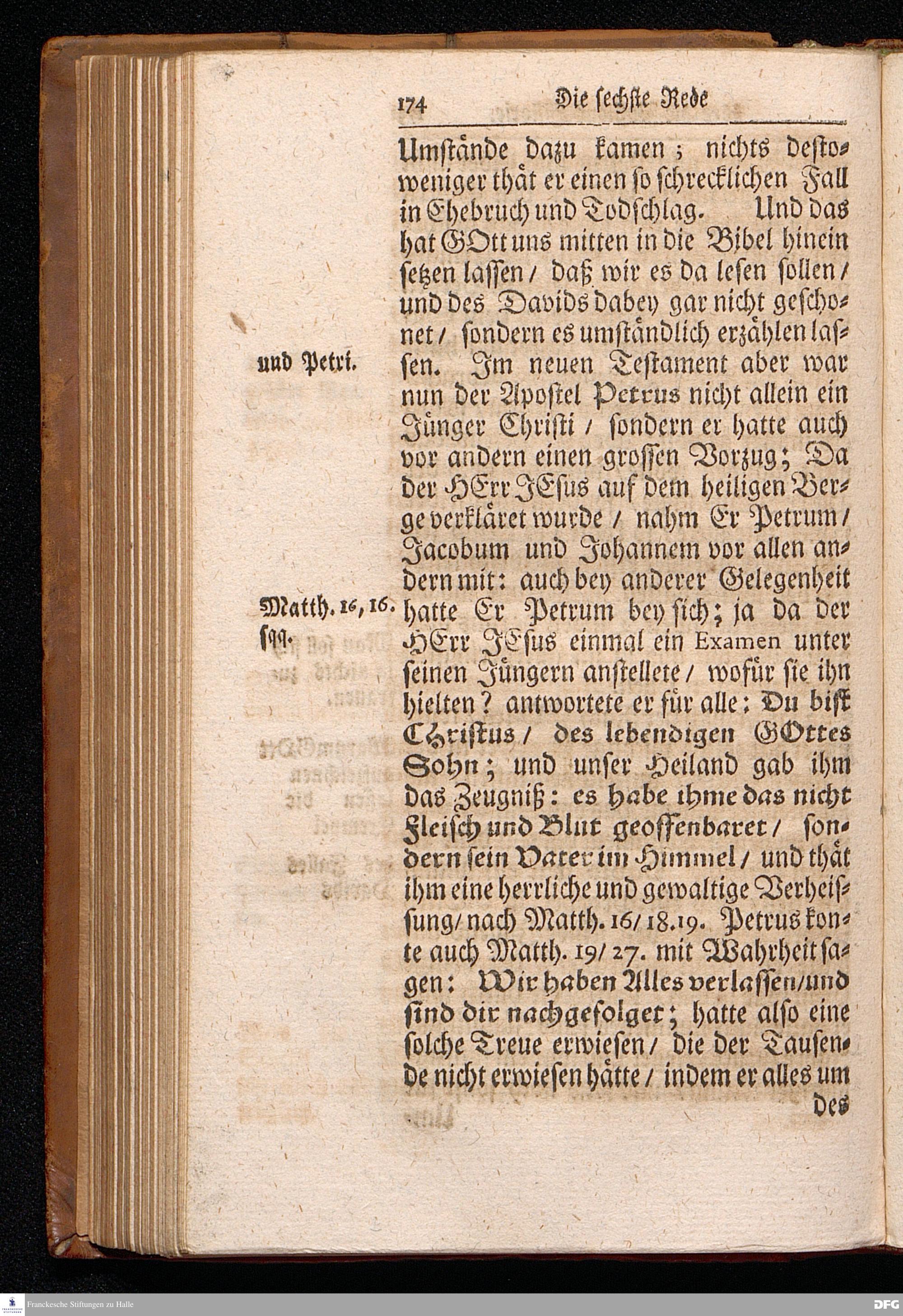 August Hermann Franckens S.Theol.Prof.Ord.und Past. Oeffentliche Reden über die Paßions=Historie / Wie dieselbe vom Evangelisten Marco im 14. und 15. Cap. beschrieben ist / gehalten Von Esto mihi bis Ostern 1712. In dem Wäysenhause zu Glaucha an Halle. HALLE, Gedruckt und verlegt im Wäysenhause, MDCCXV.