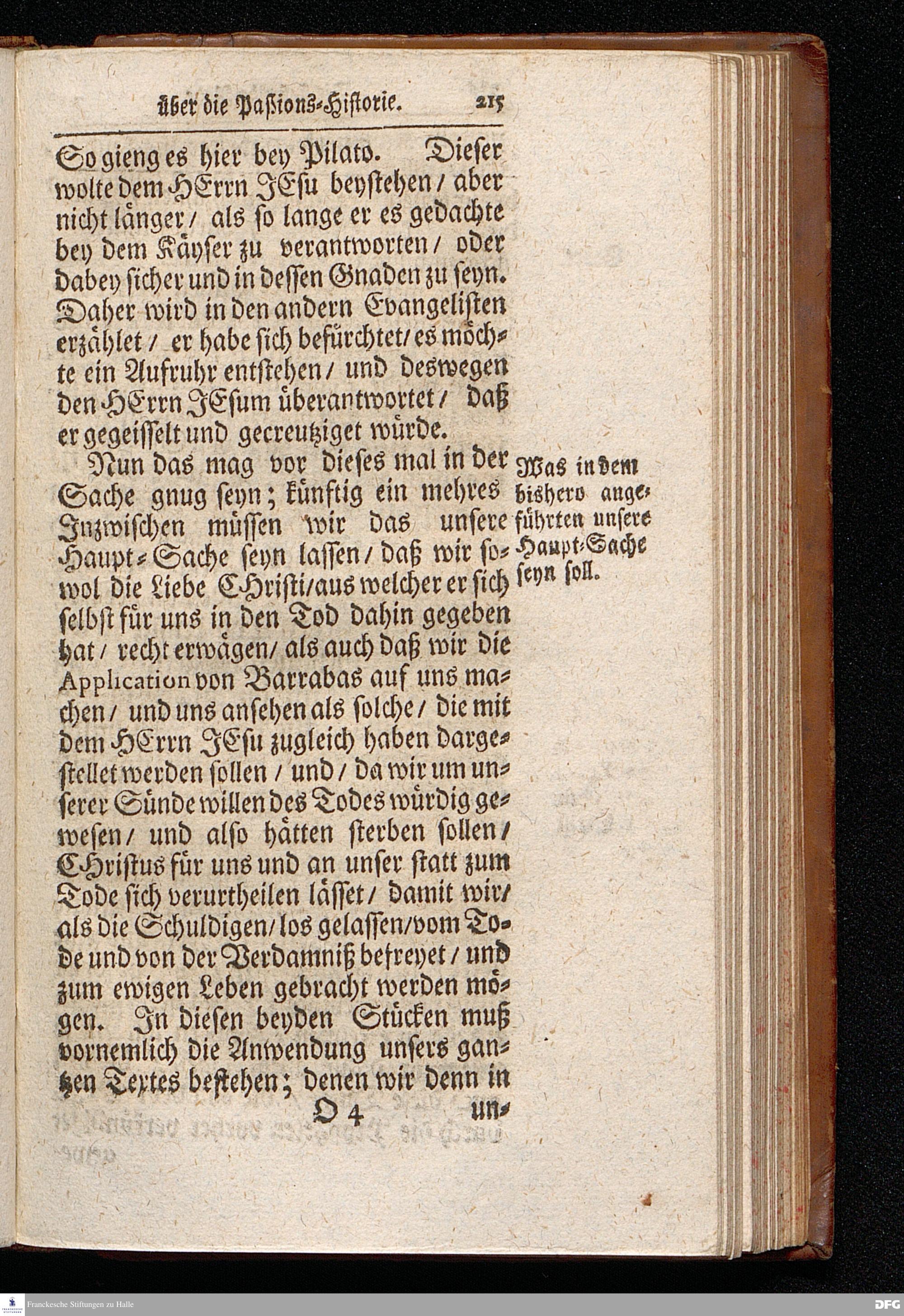 August Hermann Franckens S.Theol.Prof.Ord.und Past. Oeffentliche Reden über die Paßions=Historie / Wie dieselbe vom Evangelisten Marco im 14. und 15. Cap. beschrieben ist / gehalten Von Esto mihi bis Ostern 1712. In dem Wäysenhause zu Glaucha an Halle. HALLE, Gedruckt und verlegt im Wäysenhause, MDCCXV.