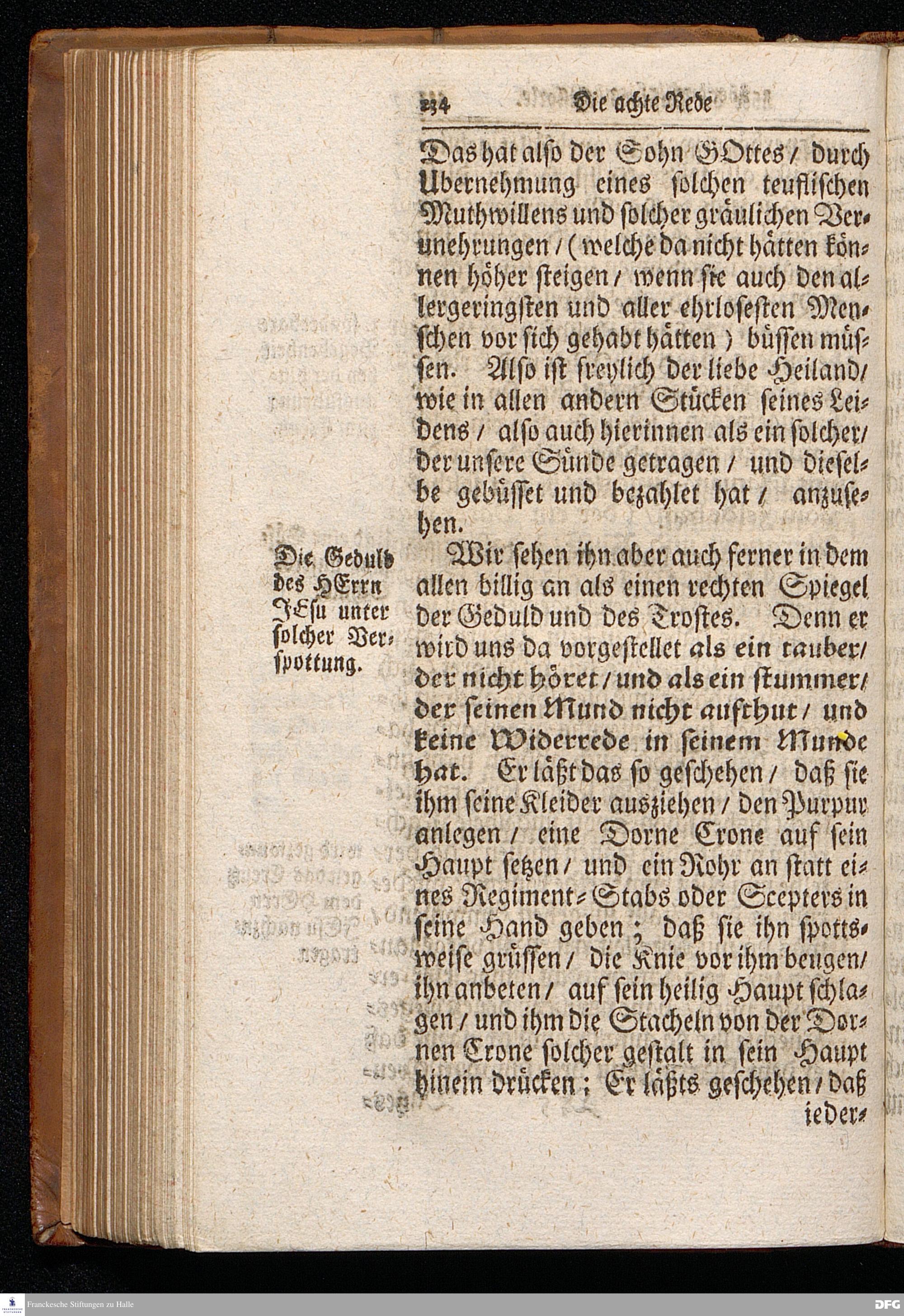 August Hermann Franckens S.Theol.Prof.Ord.und Past. Oeffentliche Reden über die Paßions=Historie / Wie dieselbe vom Evangelisten Marco im 14. und 15. Cap. beschrieben ist / gehalten Von Esto mihi bis Ostern 1712. In dem Wäysenhause zu Glaucha an Halle. HALLE, Gedruckt und verlegt im Wäysenhause, MDCCXV.