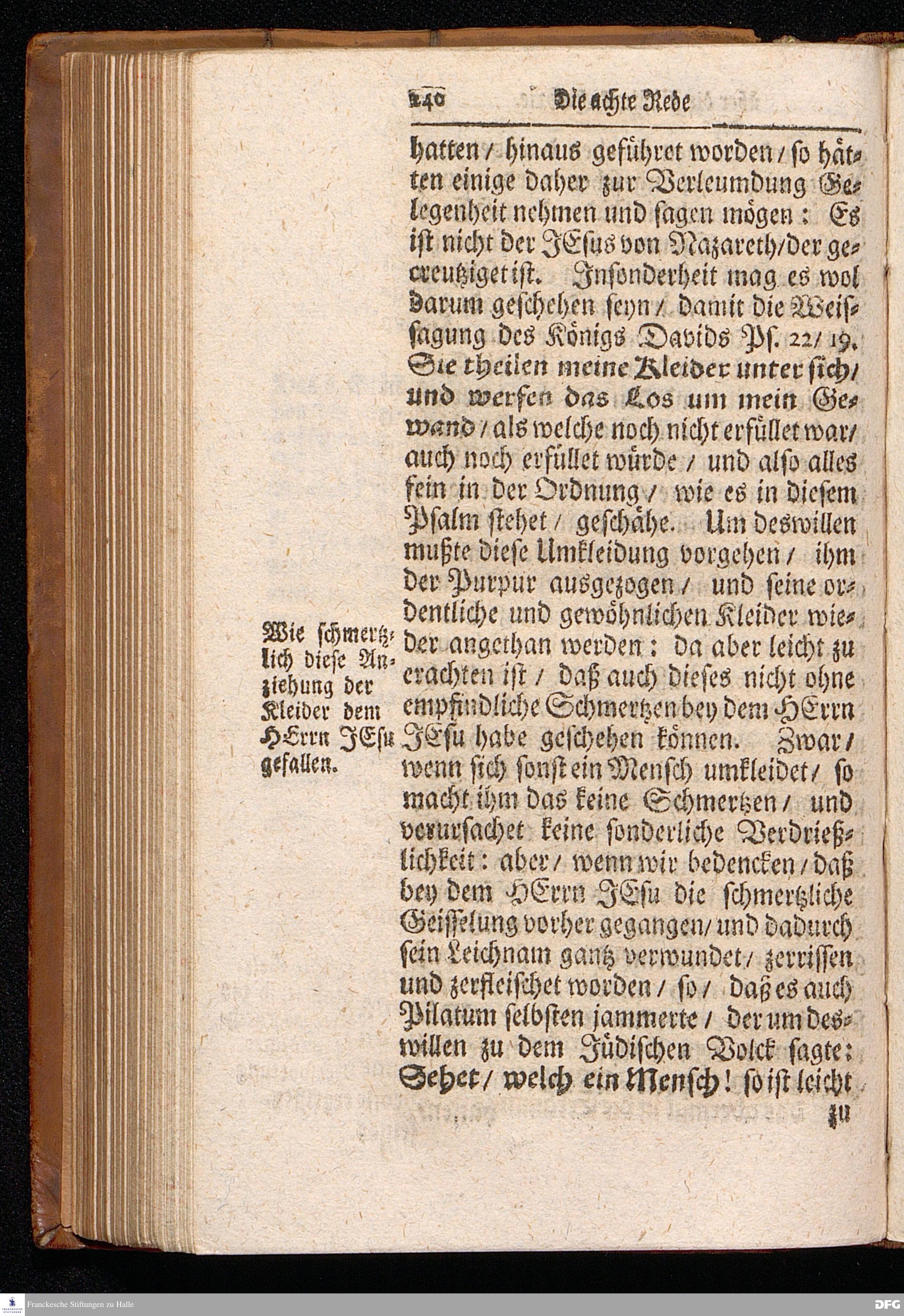 August Hermann Franckens S.Theol.Prof.Ord.und Past. Oeffentliche Reden über die Paßions=Historie / Wie dieselbe vom Evangelisten Marco im 14. und 15. Cap. beschrieben ist / gehalten Von Esto mihi bis Ostern 1712. In dem Wäysenhause zu Glaucha an Halle. HALLE, Gedruckt und verlegt im Wäysenhause, MDCCXV.
