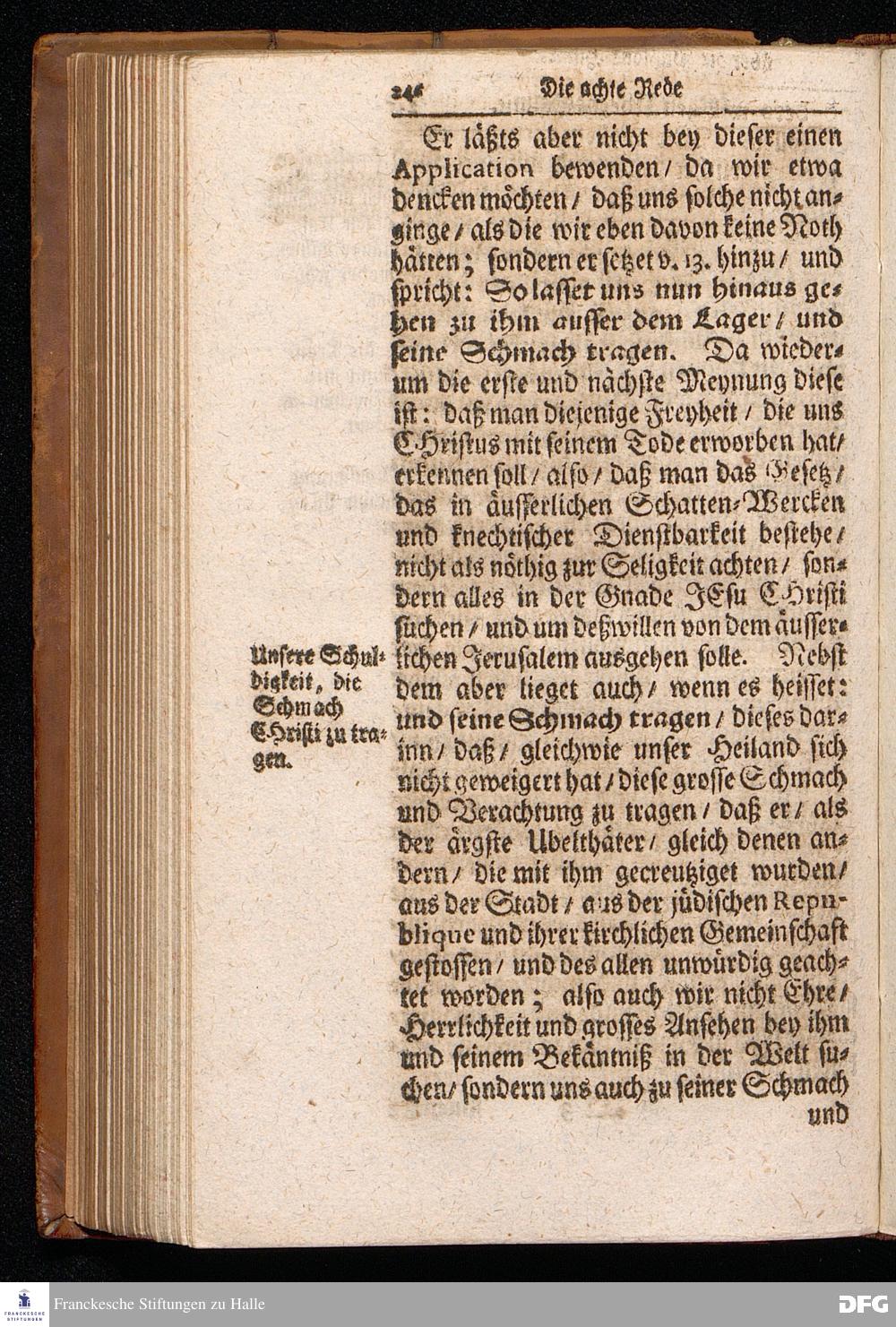 August Hermann Franckens S.Theol.Prof.Ord.und Past. Oeffentliche Reden über die Paßions=Historie / Wie dieselbe vom Evangelisten Marco im 14. und 15. Cap. beschrieben ist / gehalten Von Esto mihi bis Ostern 1712. In dem Wäysenhause zu Glaucha an Halle. HALLE, Gedruckt und verlegt im Wäysenhause, MDCCXV.
