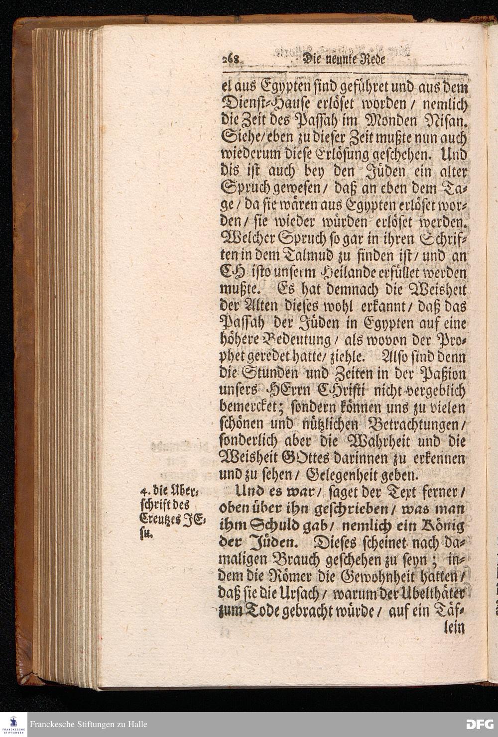 August Hermann Franckens S.Theol.Prof.Ord.und Past. Oeffentliche Reden über die Paßions=Historie / Wie dieselbe vom Evangelisten Marco im 14. und 15. Cap. beschrieben ist / gehalten Von Esto mihi bis Ostern 1712. In dem Wäysenhause zu Glaucha an Halle. HALLE, Gedruckt und verlegt im Wäysenhause, MDCCXV.