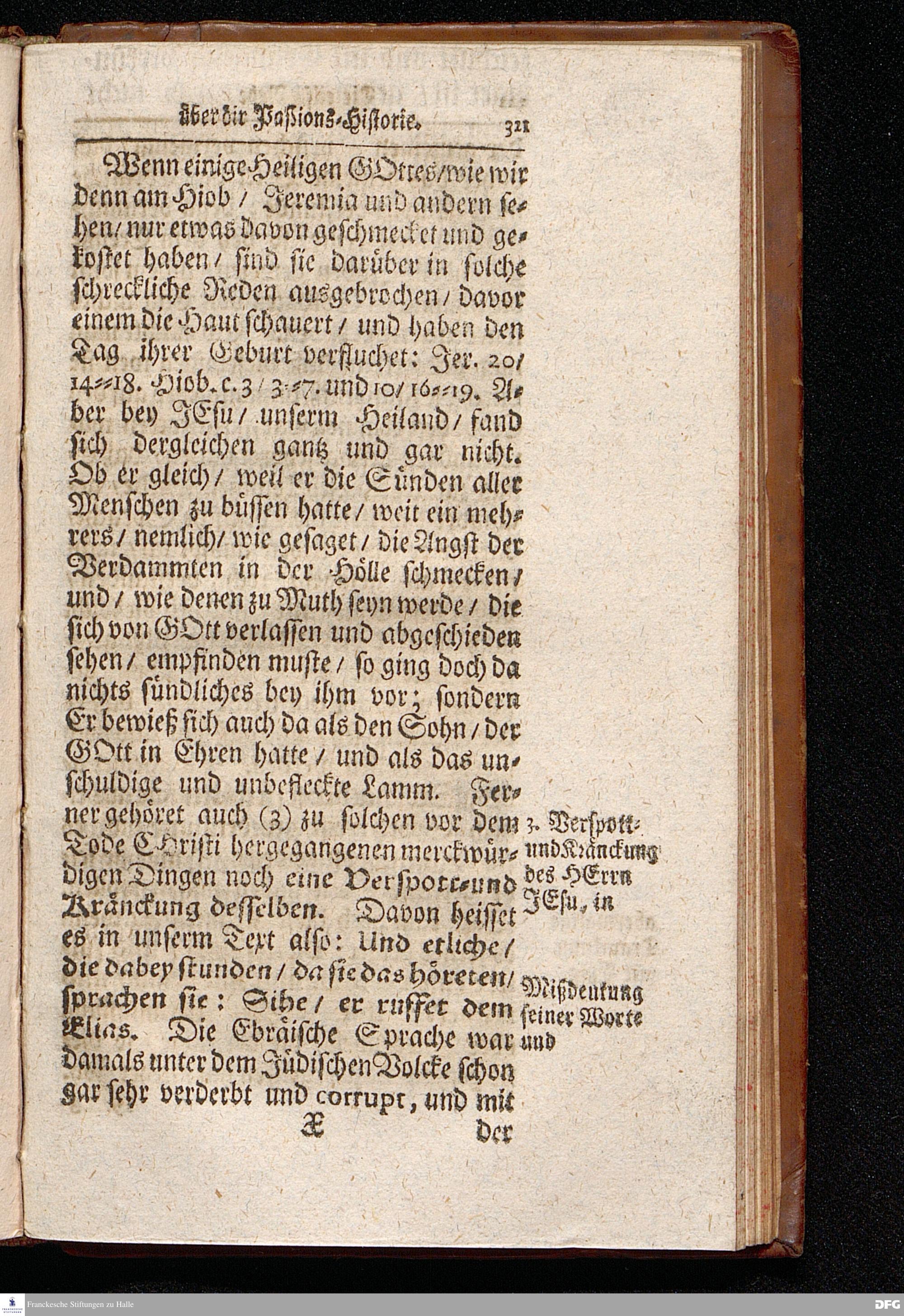 August Hermann Franckens S.Theol.Prof.Ord.und Past. Oeffentliche Reden über die Paßions=Historie / Wie dieselbe vom Evangelisten Marco im 14. und 15. Cap. beschrieben ist / gehalten Von Esto mihi bis Ostern 1712. In dem Wäysenhause zu Glaucha an Halle. HALLE, Gedruckt und verlegt im Wäysenhause, MDCCXV.