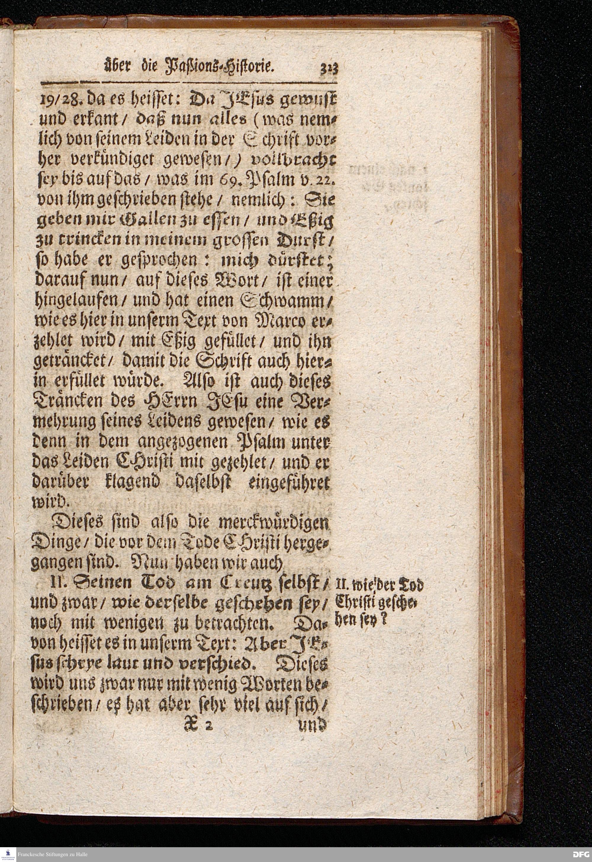 August Hermann Franckens S.Theol.Prof.Ord.und Past. Oeffentliche Reden über die Paßions=Historie / Wie dieselbe vom Evangelisten Marco im 14. und 15. Cap. beschrieben ist / gehalten Von Esto mihi bis Ostern 1712. In dem Wäysenhause zu Glaucha an Halle. HALLE, Gedruckt und verlegt im Wäysenhause, MDCCXV.