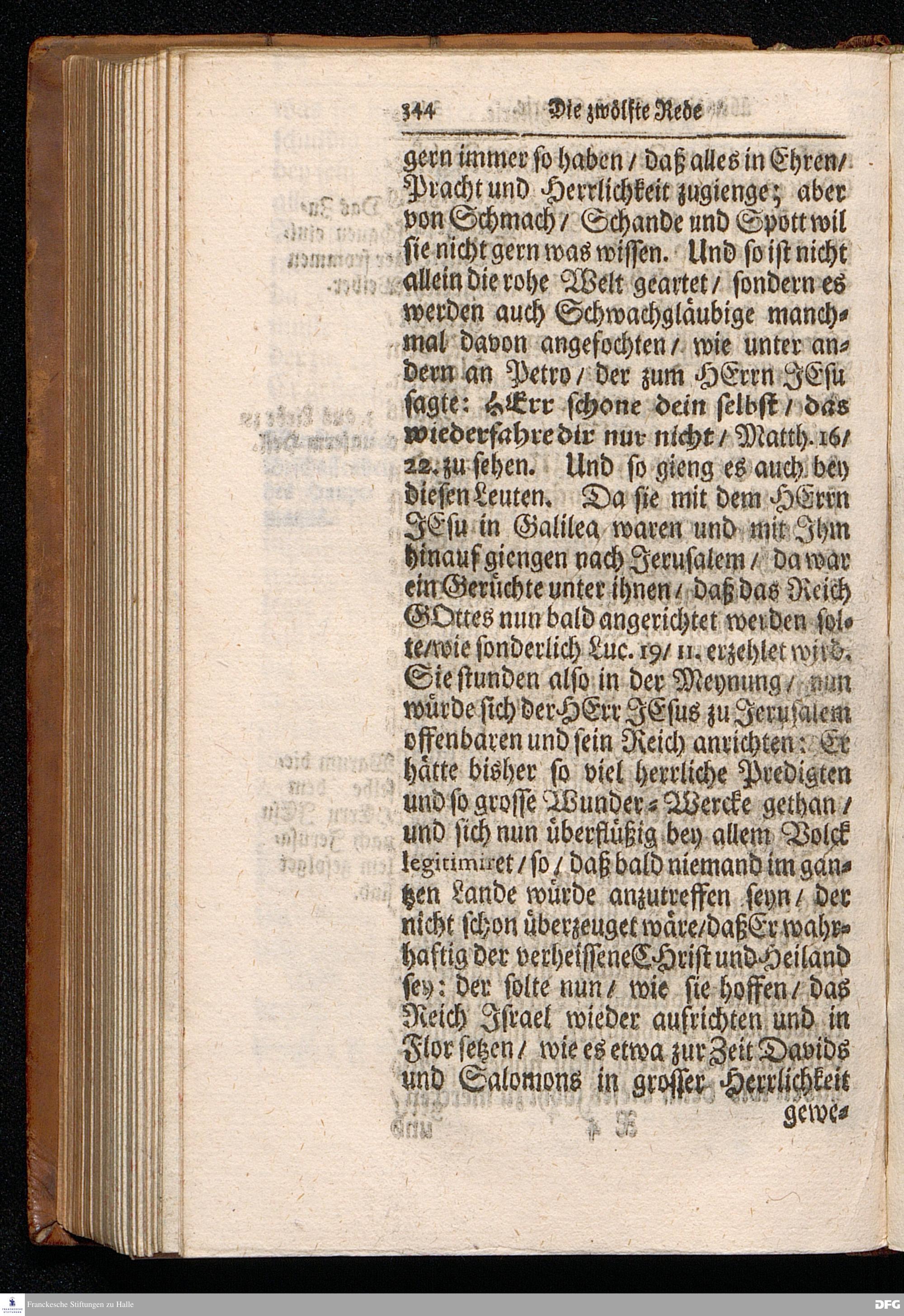 August Hermann Franckens S.Theol.Prof.Ord.und Past. Oeffentliche Reden über die Paßions=Historie / Wie dieselbe vom Evangelisten Marco im 14. und 15. Cap. beschrieben ist / gehalten Von Esto mihi bis Ostern 1712. In dem Wäysenhause zu Glaucha an Halle. HALLE, Gedruckt und verlegt im Wäysenhause, MDCCXV.