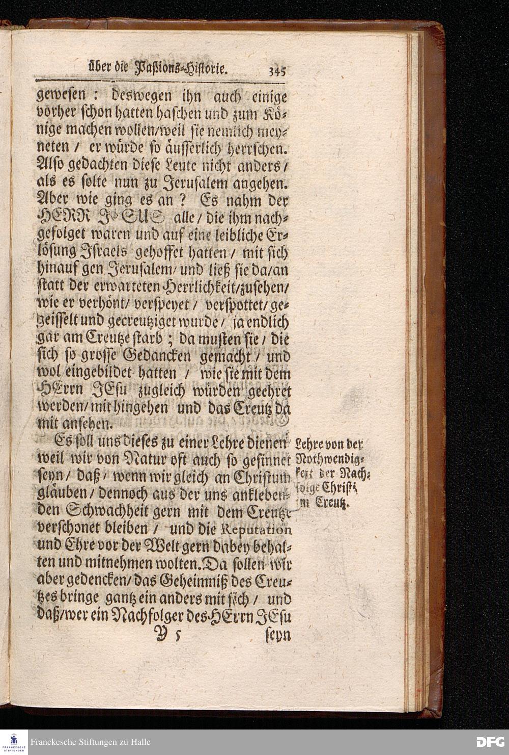 August Hermann Franckens S.Theol.Prof.Ord.und Past. Oeffentliche Reden über die Paßions=Historie / Wie dieselbe vom Evangelisten Marco im 14. und 15. Cap. beschrieben ist / gehalten Von Esto mihi bis Ostern 1712. In dem Wäysenhause zu Glaucha an Halle. HALLE, Gedruckt und verlegt im Wäysenhause, MDCCXV.