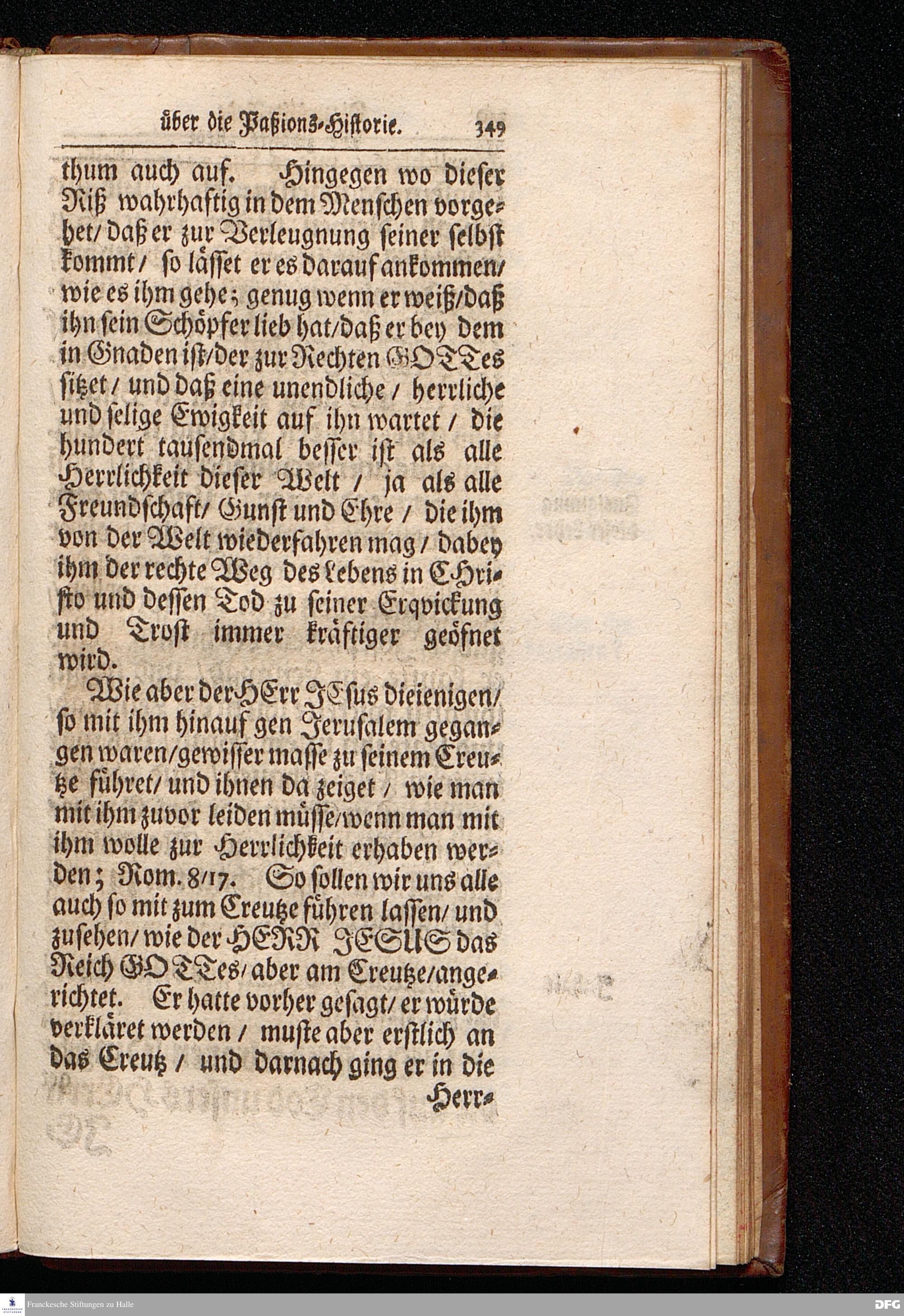August Hermann Franckens S.Theol.Prof.Ord.und Past. Oeffentliche Reden über die Paßions=Historie / Wie dieselbe vom Evangelisten Marco im 14. und 15. Cap. beschrieben ist / gehalten Von Esto mihi bis Ostern 1712. In dem Wäysenhause zu Glaucha an Halle. HALLE, Gedruckt und verlegt im Wäysenhause, MDCCXV.