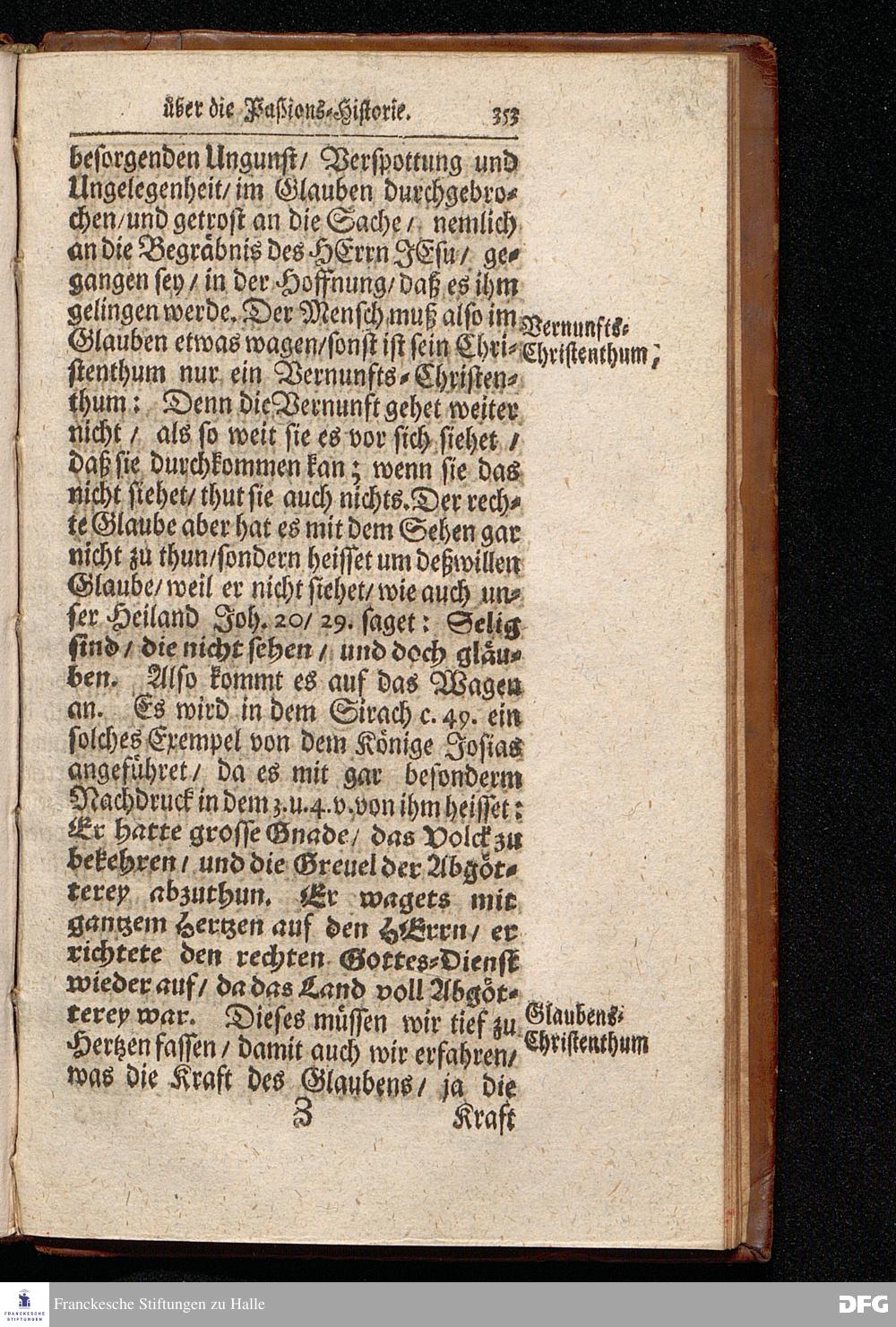 August Hermann Franckens S.Theol.Prof.Ord.und Past. Oeffentliche Reden über die Paßions=Historie / Wie dieselbe vom Evangelisten Marco im 14. und 15. Cap. beschrieben ist / gehalten Von Esto mihi bis Ostern 1712. In dem Wäysenhause zu Glaucha an Halle. HALLE, Gedruckt und verlegt im Wäysenhause, MDCCXV.