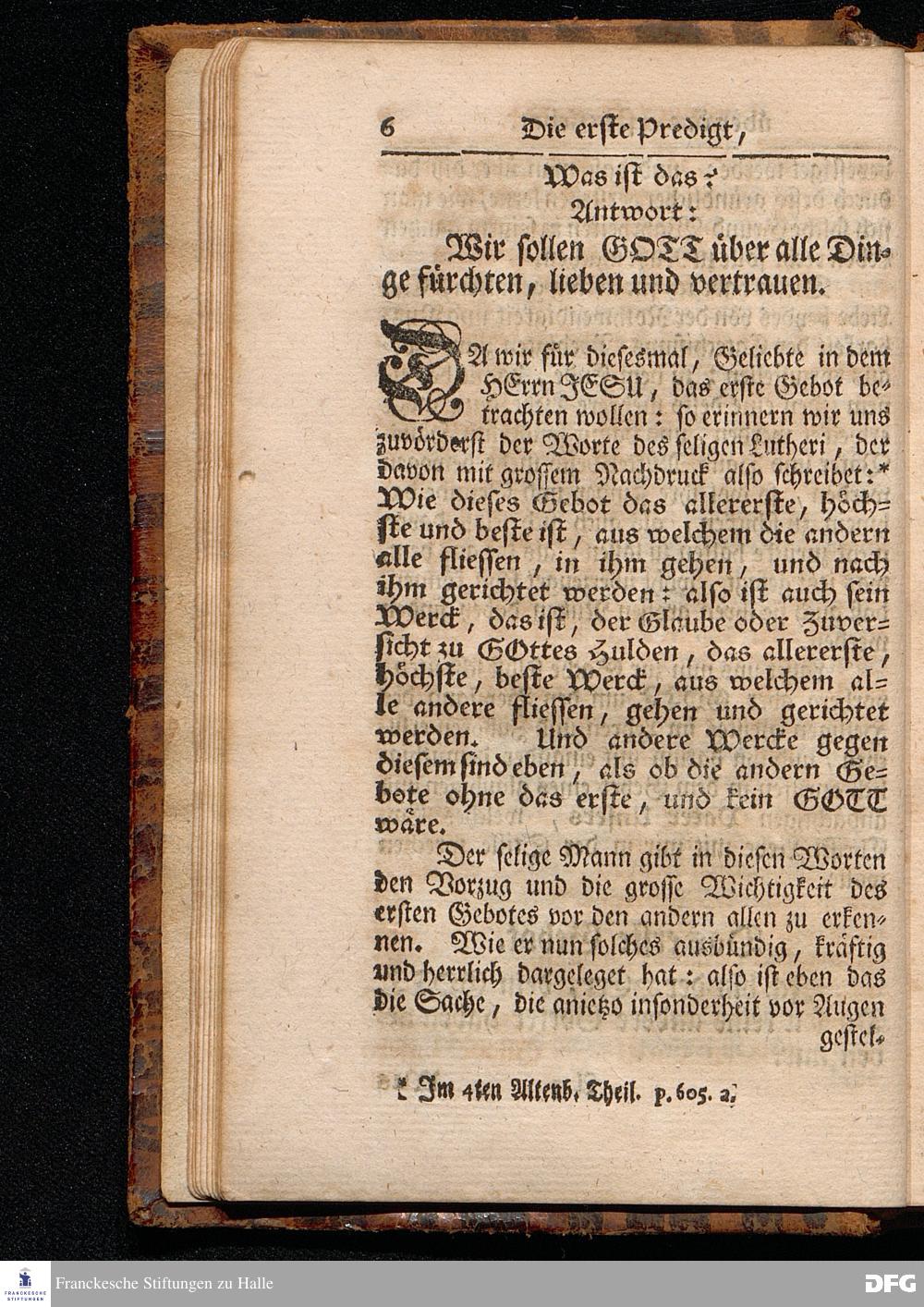 August Hermann Franckens / S.Th.Pr.Past.Vlr.& Schol. Catechismus = Predigten / Darinnen Die V.Hauptstücke des kleinen Catechismi Lutheri, zu gründlicher Erbauung im wahren thätigen Christenthum, abgehandelt sind, gehalten In der Kirche zur L.Frauen zu Halle / im Hertzogthum Magdeburg. Andere Auflage. HALLE, In Verlegung des Wäysenhauses, MDCCXXIX.