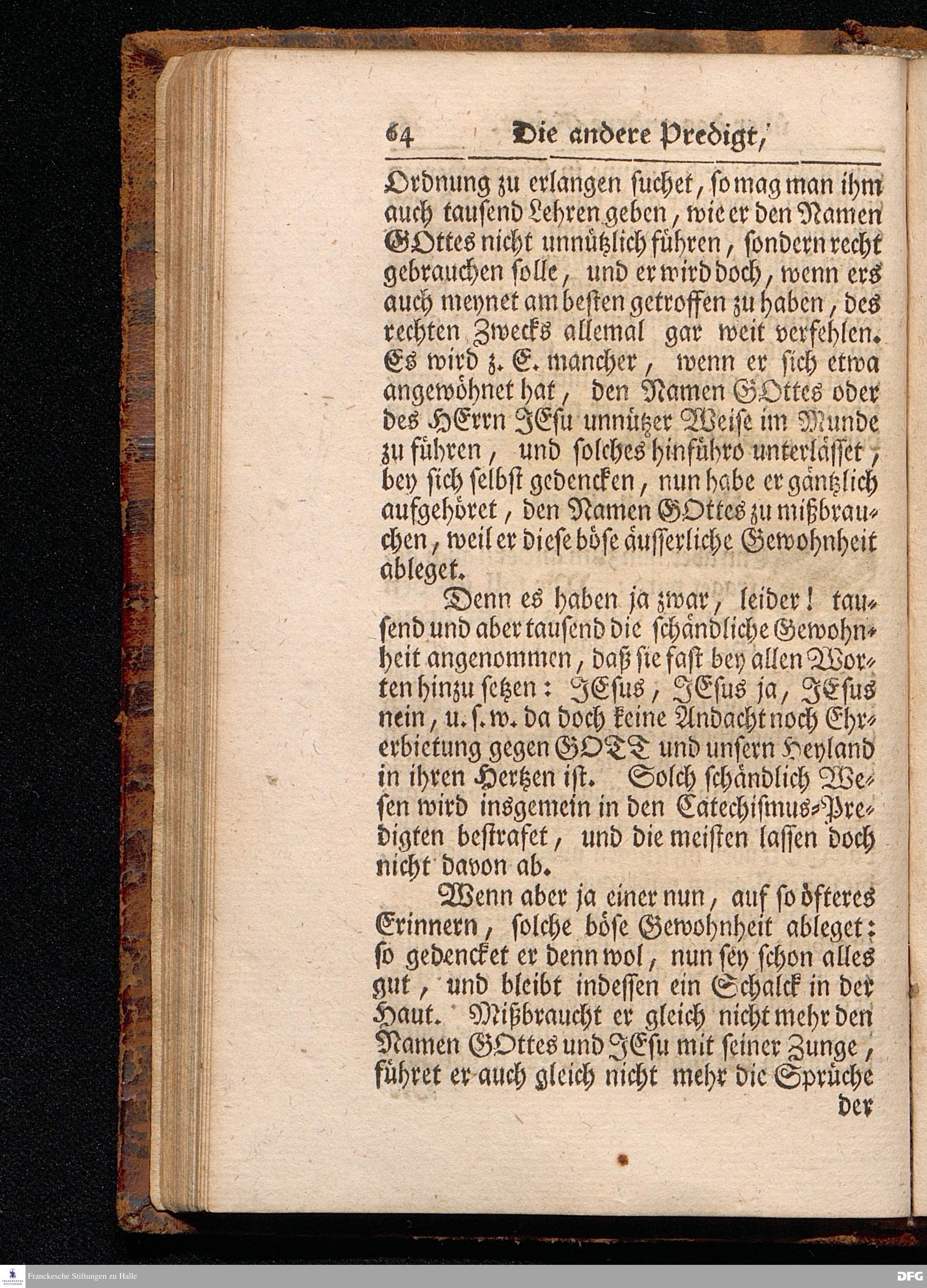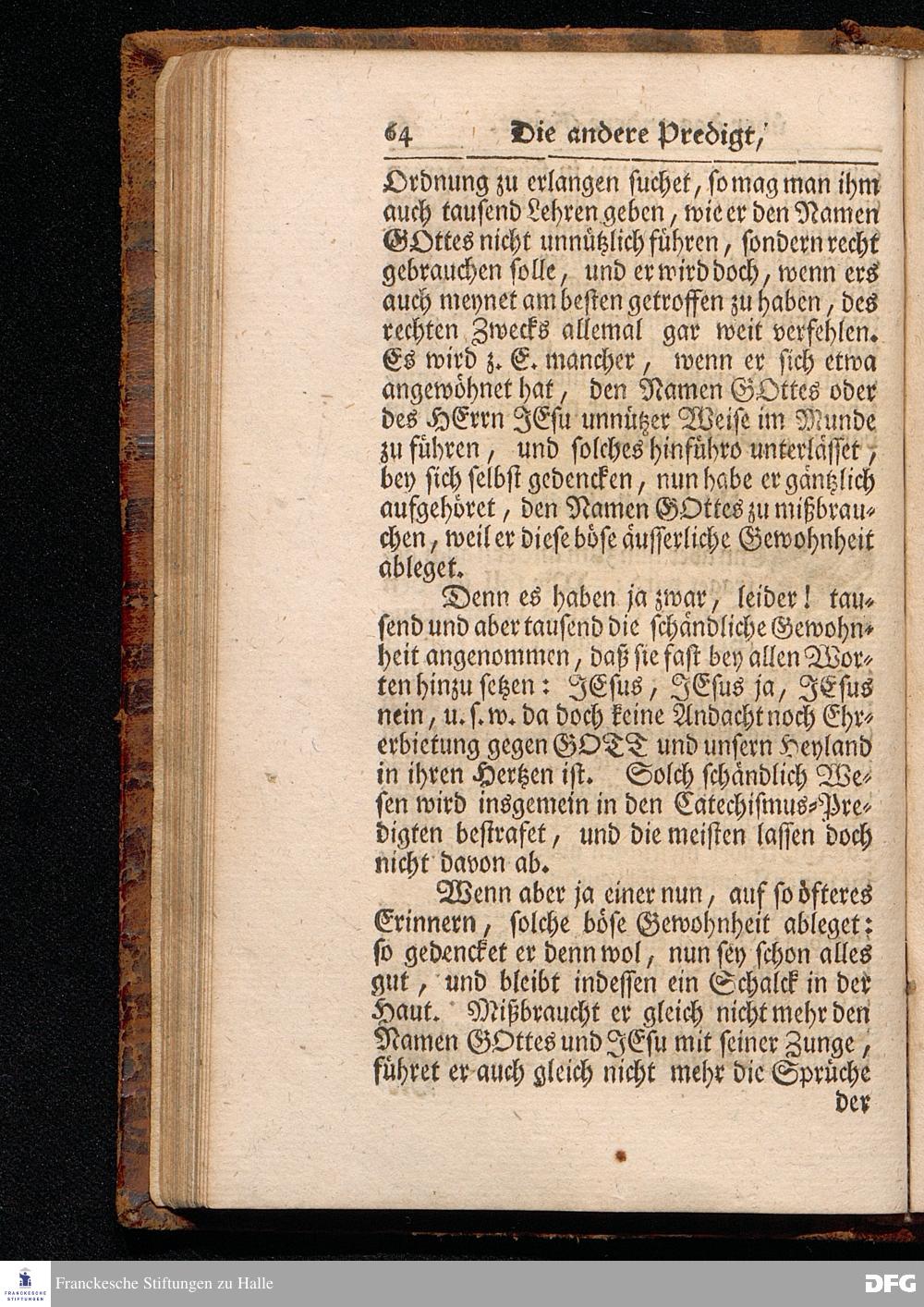 August Hermann Franckens / S.Th.Pr.Past.Vlr.& Schol. Catechismus = Predigten / Darinnen Die V.Hauptstücke des kleinen Catechismi Lutheri, zu gründlicher Erbauung im wahren thätigen Christenthum, abgehandelt sind, gehalten In der Kirche zur L.Frauen zu Halle / im Hertzogthum Magdeburg. Andere Auflage. HALLE, In Verlegung des Wäysenhauses, MDCCXXIX.