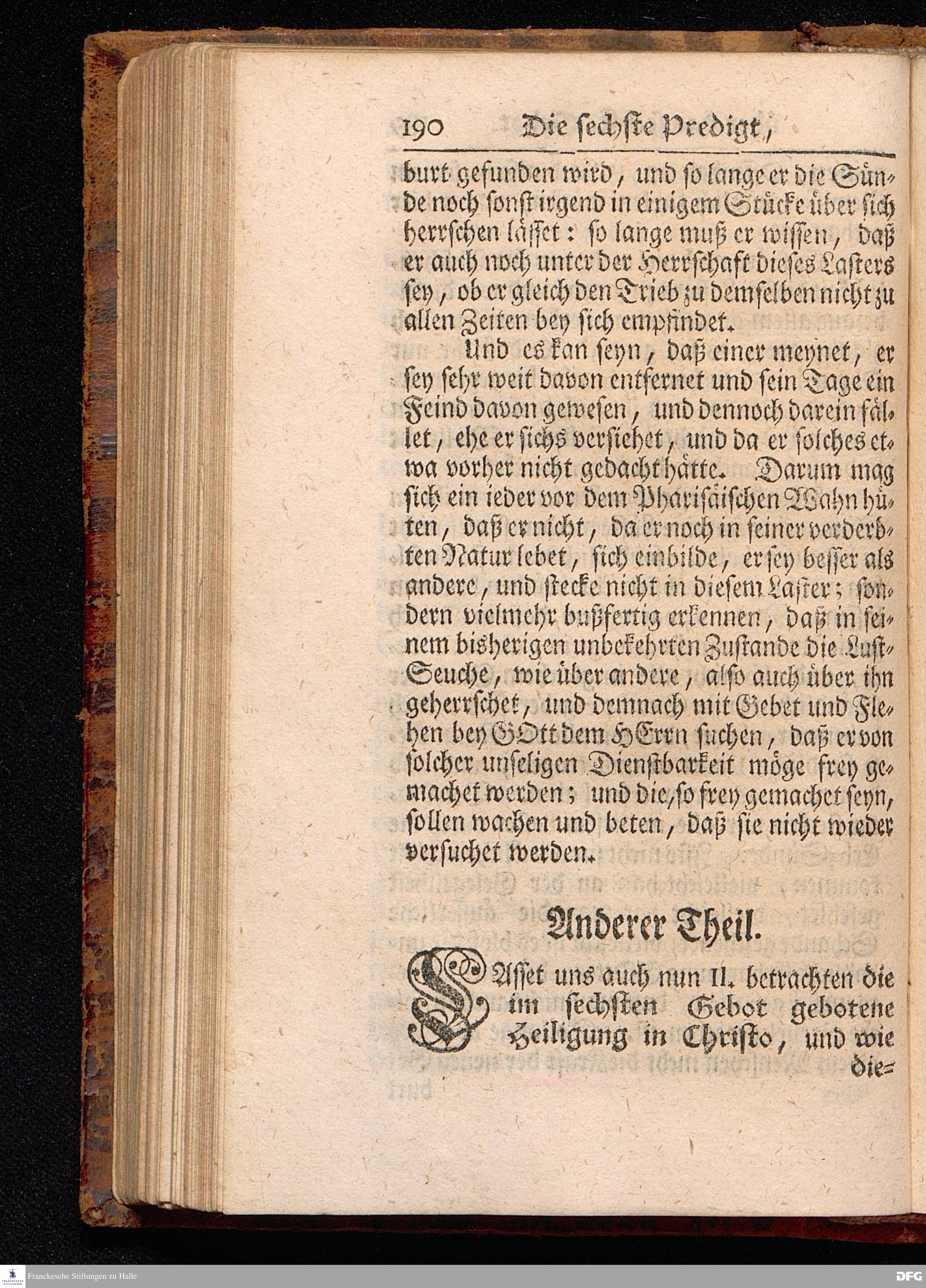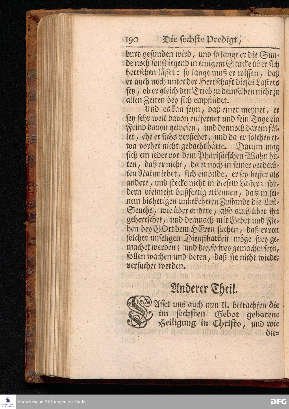August Hermann Franckens / S.Th.Pr.Past.Vlr.& Schol. Catechismus = Predigten / Darinnen Die V.Hauptstücke des kleinen Catechismi Lutheri, zu gründlicher Erbauung im wahren thätigen Christenthum, abgehandelt sind, gehalten In der Kirche zur L.Frauen zu Halle / im Hertzogthum Magdeburg. Andere Auflage. HALLE, In Verlegung des Wäysenhauses, MDCCXXIX.
