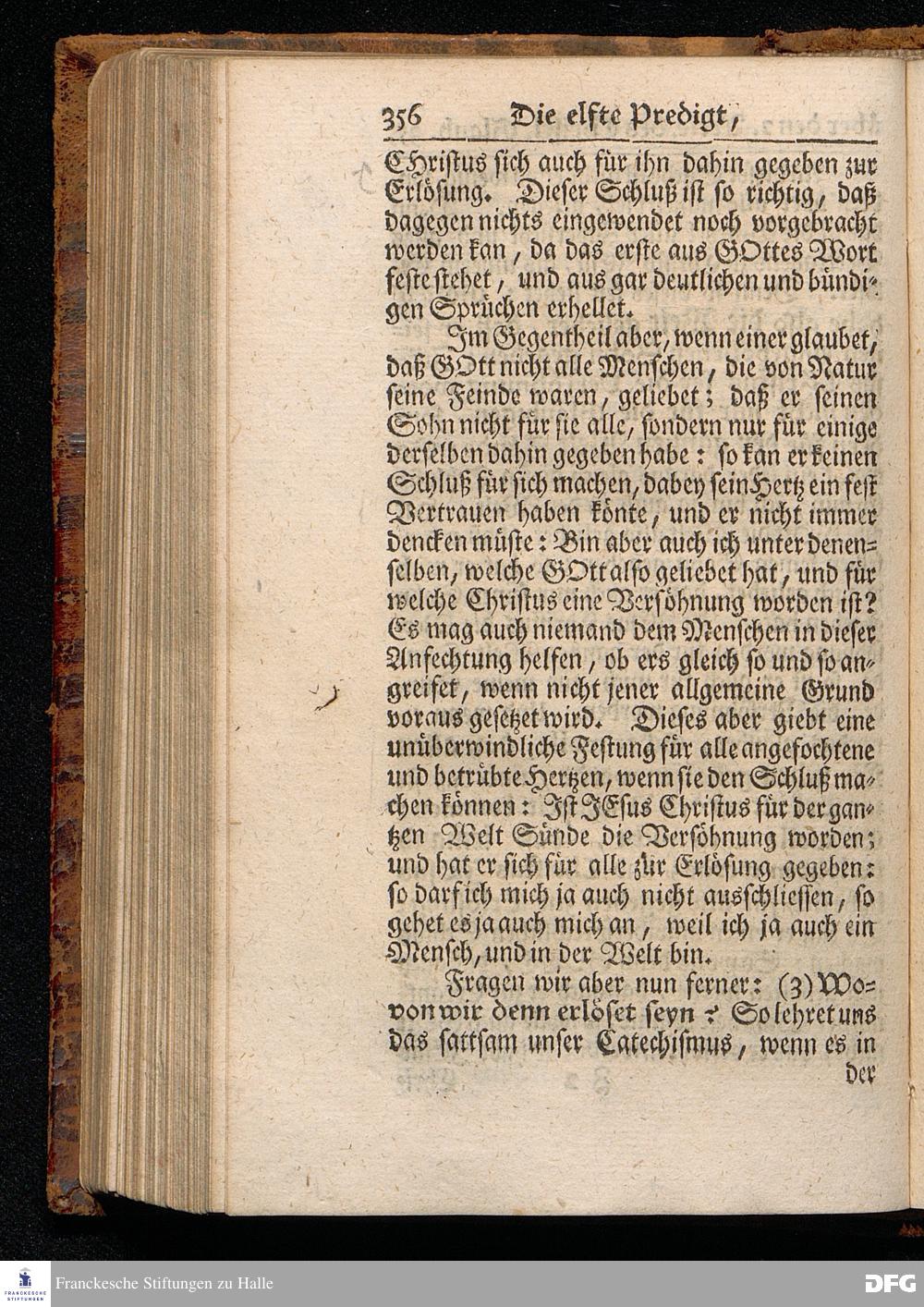 August Hermann Franckens / S.Th.Pr.Past.Vlr.& Schol. Catechismus = Predigten / Darinnen Die V.Hauptstücke des kleinen Catechismi Lutheri, zu gründlicher Erbauung im wahren thätigen Christenthum, abgehandelt sind, gehalten In der Kirche zur L.Frauen zu Halle / im Hertzogthum Magdeburg. Andere Auflage. HALLE, In Verlegung des Wäysenhauses, MDCCXXIX.