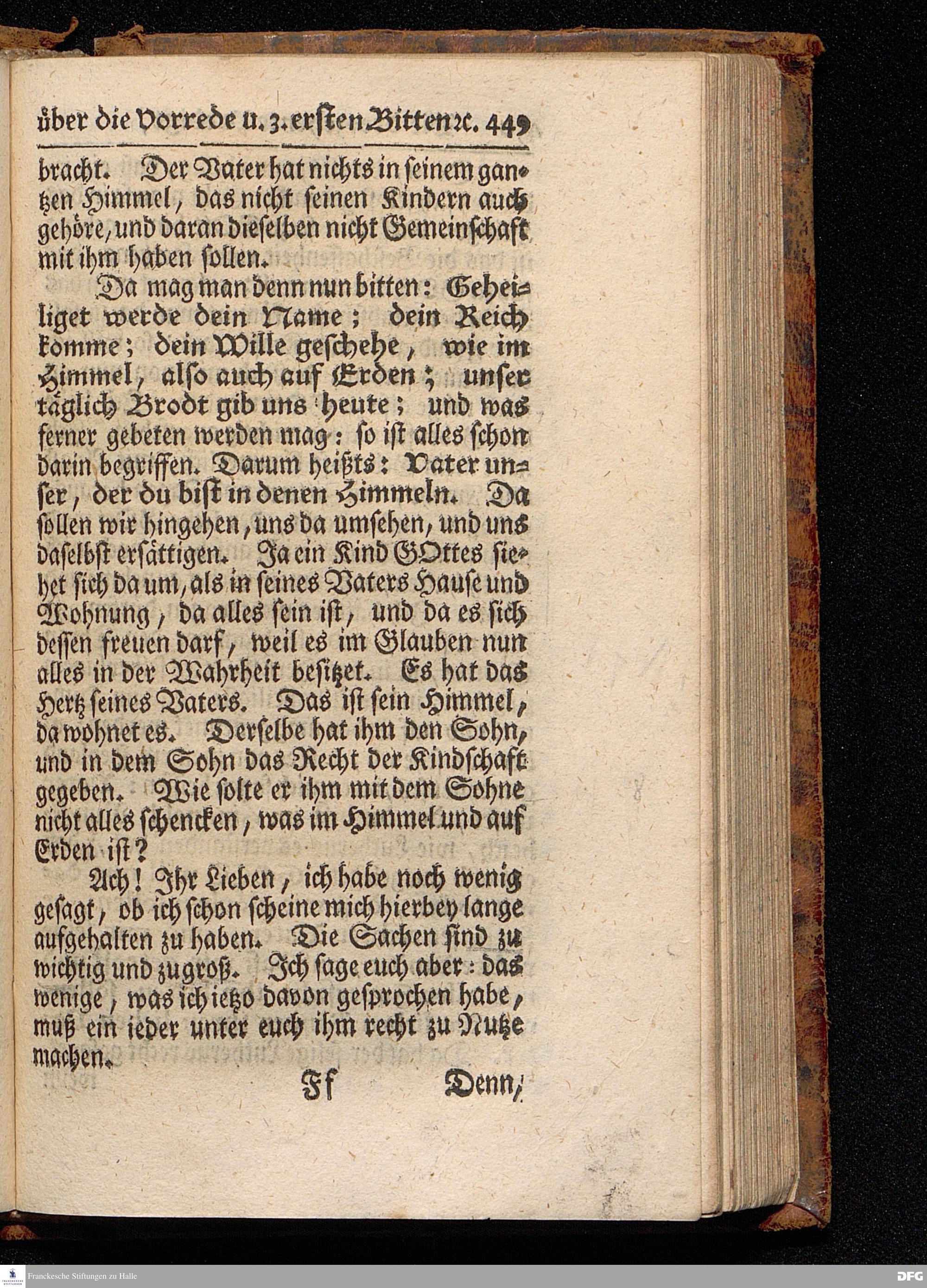 August Hermann Franckens / S.Th.Pr.Past.Vlr.& Schol. Catechismus = Predigten / Darinnen Die V.Hauptstücke des kleinen Catechismi Lutheri, zu gründlicher Erbauung im wahren thätigen Christenthum, abgehandelt sind, gehalten In der Kirche zur L.Frauen zu Halle / im Hertzogthum Magdeburg. Andere Auflage. HALLE, In Verlegung des Wäysenhauses, MDCCXXIX.