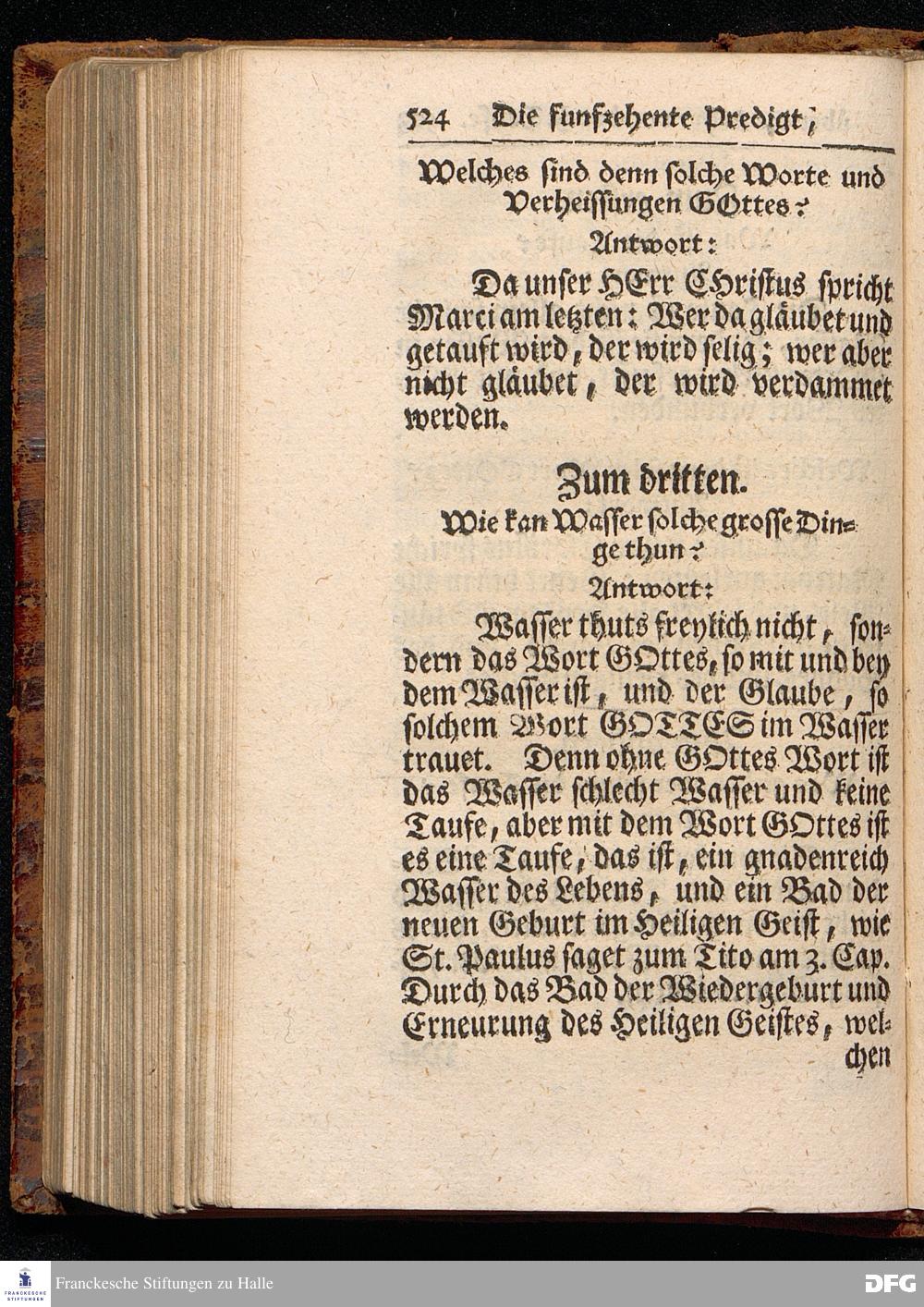 August Hermann Franckens / S.Th.Pr.Past.Vlr.& Schol. Catechismus = Predigten / Darinnen Die V.Hauptstücke des kleinen Catechismi Lutheri, zu gründlicher Erbauung im wahren thätigen Christenthum, abgehandelt sind, gehalten In der Kirche zur L.Frauen zu Halle / im Hertzogthum Magdeburg. Andere Auflage. HALLE, In Verlegung des Wäysenhauses, MDCCXXIX.