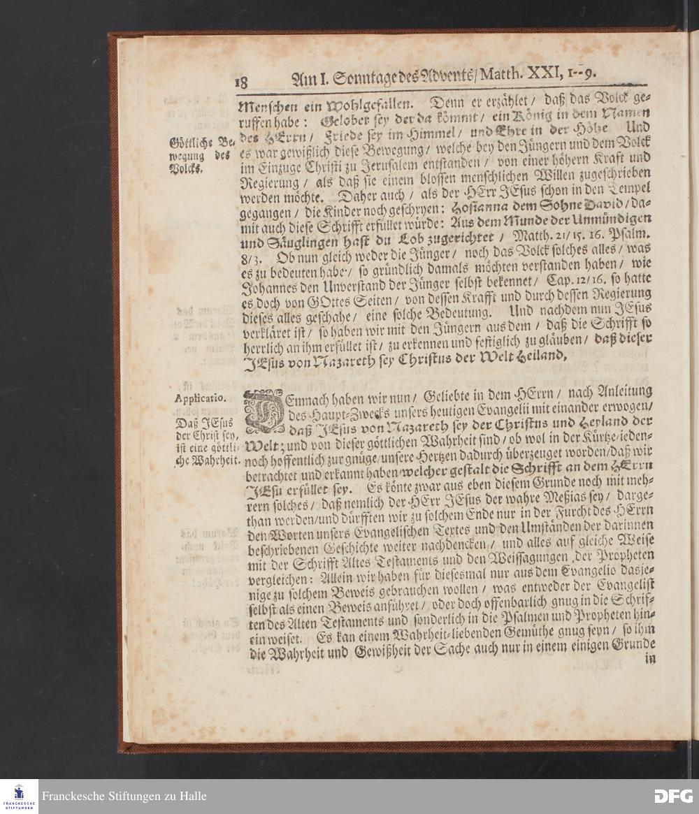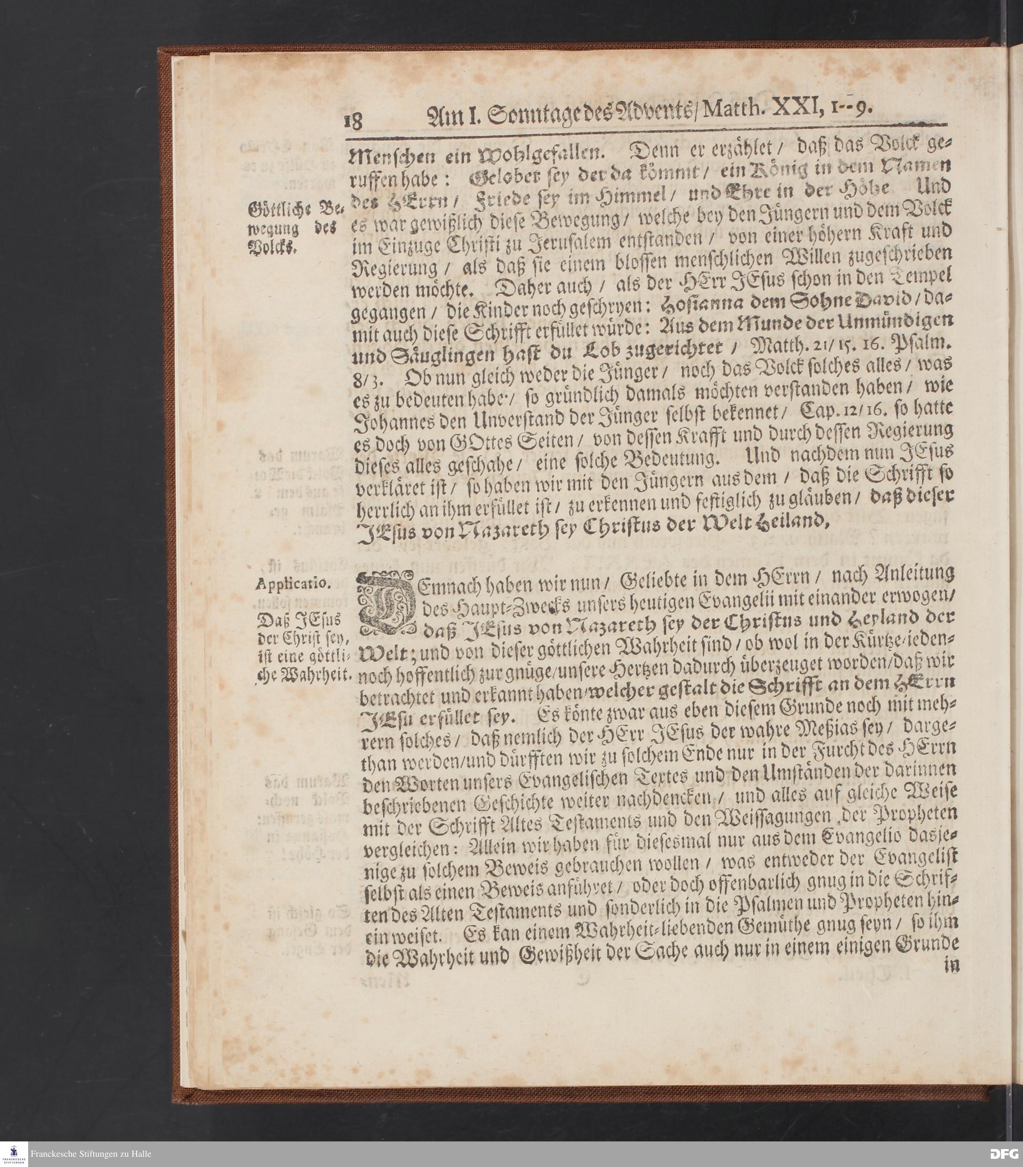 August Hermann Franckens S.Theol.Prof.und Past. Sonn= Fest= und Apostel=Tags=-Predigten / Darinnen Die zum wahren Christenthum gehörige nöthigste und vornehmste Materien abgehandelt sind; Nunmehro von neuen wieder durchgesehen / und mit einigen Predigten vermehret / Nebst den darzu nützlichen Registern. Die vierte EDITION. HALLE / gedruckt und verlegt im Wäysen=Hause / MDCCXV. Mit Königl.Preuß.und Churfl.Brandenb.Privil.