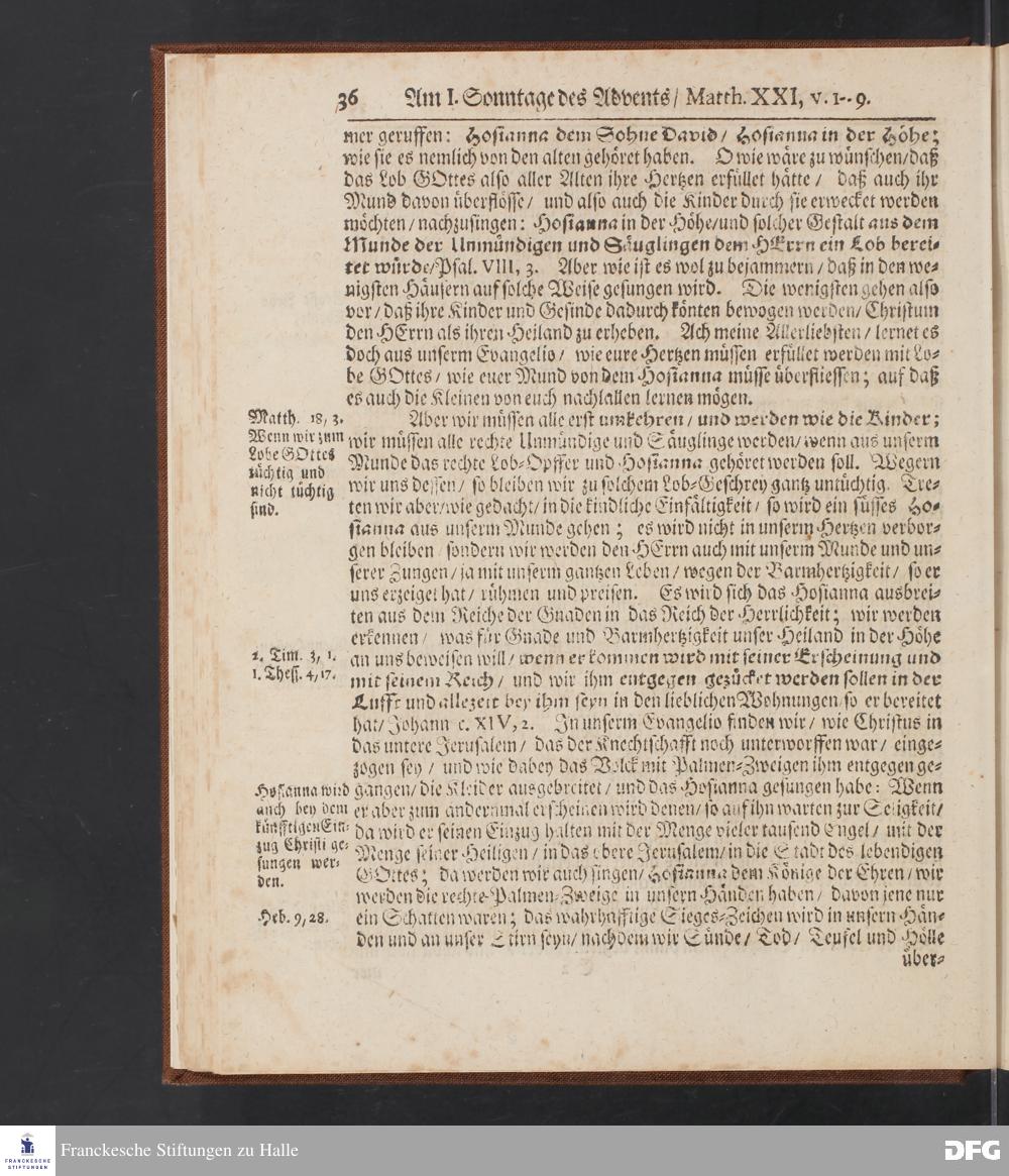 August Hermann Franckens S.Theol.Prof.und Past. Sonn= Fest= und Apostel=Tags=-Predigten / Darinnen Die zum wahren Christenthum gehörige nöthigste und vornehmste Materien abgehandelt sind; Nunmehro von neuen wieder durchgesehen / und mit einigen Predigten vermehret / Nebst den darzu nützlichen Registern. Die vierte EDITION. HALLE / gedruckt und verlegt im Wäysen=Hause / MDCCXV. Mit Königl.Preuß.und Churfl.Brandenb.Privil.